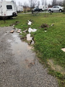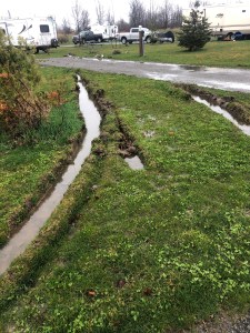 We reserved a site at this park just to be called a few days later and be told that site was unavailable because someone had destroyed it! Seriously as you can see this idiot had actually almost been totally across this site, how do you do that, oh yaa your stupid! My expectations are not real high, but when you realize your in trouble just stop and walk away, call a friend, ask for help, but at least quit making it worse! This site has hundreds if not thousands of dollars damage, at best it will be scared for the whole season, and for no other reason other than someone did not know how to drive their RV. So you are either efficient at entering your site and setting up or you quickly become the campgrounds latest entertainment for the day. In Ontario right now it is early spring so the ground is very soft, so your inability to back up your rig gets magnified, so do yourself a favour practice backing up your rig, go to an empty parking lot and practice, set out some markers, use your mirrors, and practice. I do understand it can be difficult, but it is a skill that can be learned, and practice both directions, it’s always easier backing in to the right but you need to be able to back into the left as well. An assistant or spotter can help but they need to know what you want to know, is their task just to spot concerns on the corner you can’t see or is it to tell you when you reach your pivot point so you can start your turn, or whatever information you need to know. That spotter should be there when your practicing, information is great, too much can just be overwhelming or confusing. So they should just tell you what you asked them to, as simple as that. And if you are into a situation you can not handle ask for help, either get a different site, assistance with spotting, or maybe just let them back it in place for you, some people are just better at understanding the angles and turning ratios than others. But you need to learn how to park your rig your self, so practice, practice, practice.
