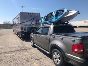 Two hours further down the road and we are pulling into Lake Huron Resort, our home for the summer. It is a 200 plus site campground on the shore of Lake Huron, and this is where we will be our work camping job for the season, exact details of our duties will start to come into focus tomorrow at 9 o’clock. We have a site that is located close to the office, quite large, well treed (could be a satellite issue), has a storage shed which will be great to keep the chairs out of the rain. Had a beautiful sunset on day one, everything is a little wet, but there are lots of buds on the trees so spring is here.