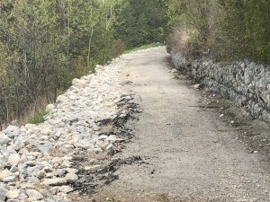 This task is normally not this bad but because of all the work at the bottom of the access, and the fact all the gravel had to be taken down a loader bucket at a time, add the steep angle and much spillage had taken place. We felt that there must have been a couple of cubic yards of gravel spread across the walkway. The walkway is pavement and the gravel has larger stones that just act like marbles as you step on them. So the walk had to be raked, and a blower was used to remove the sandy portion of the gravel so it’s hot and dusty plus a lot of work…but we were able to complete the task and safely open the walkway.