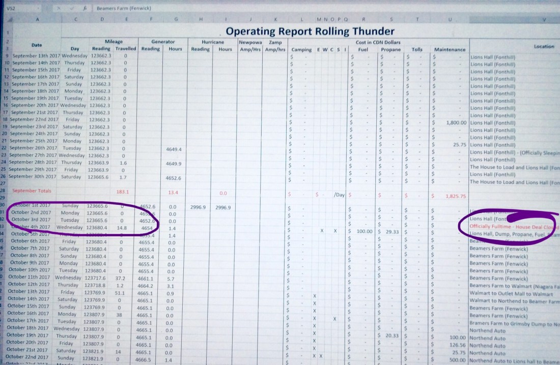 We have tracked every movement of Rolling Thunder since the purchase in May of 2017 notice the mileage 123665.6 when we officially went full time and it was 135724.4 a year ago and today it is 139135.9 only 15,470.3 miles or 24,752.4 kilometres, which doesn’t seem like very far for two years.