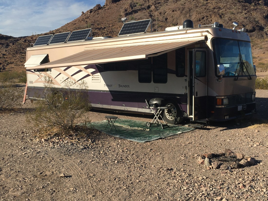 So we are settled into Craggy Wash in the Lake Havasu area, solar panels are tilted to get the best bang for the buck, temperature is 82 or 25 degrees and nothing but sunshine. The battery bank is full and with the evening temperature only going down into the high 50’s the furnace should not be required at all, today is the first time we have been able sit out since we were at LHR (Lake Huron Resort), it’s great to sit in the sun and absorb some vitamin D after a month of cold weather and being chased across the continent, but this weekend is going to be mid 80’s with just a little cloud tomorrow should be nothing but solar…will keep you informed.