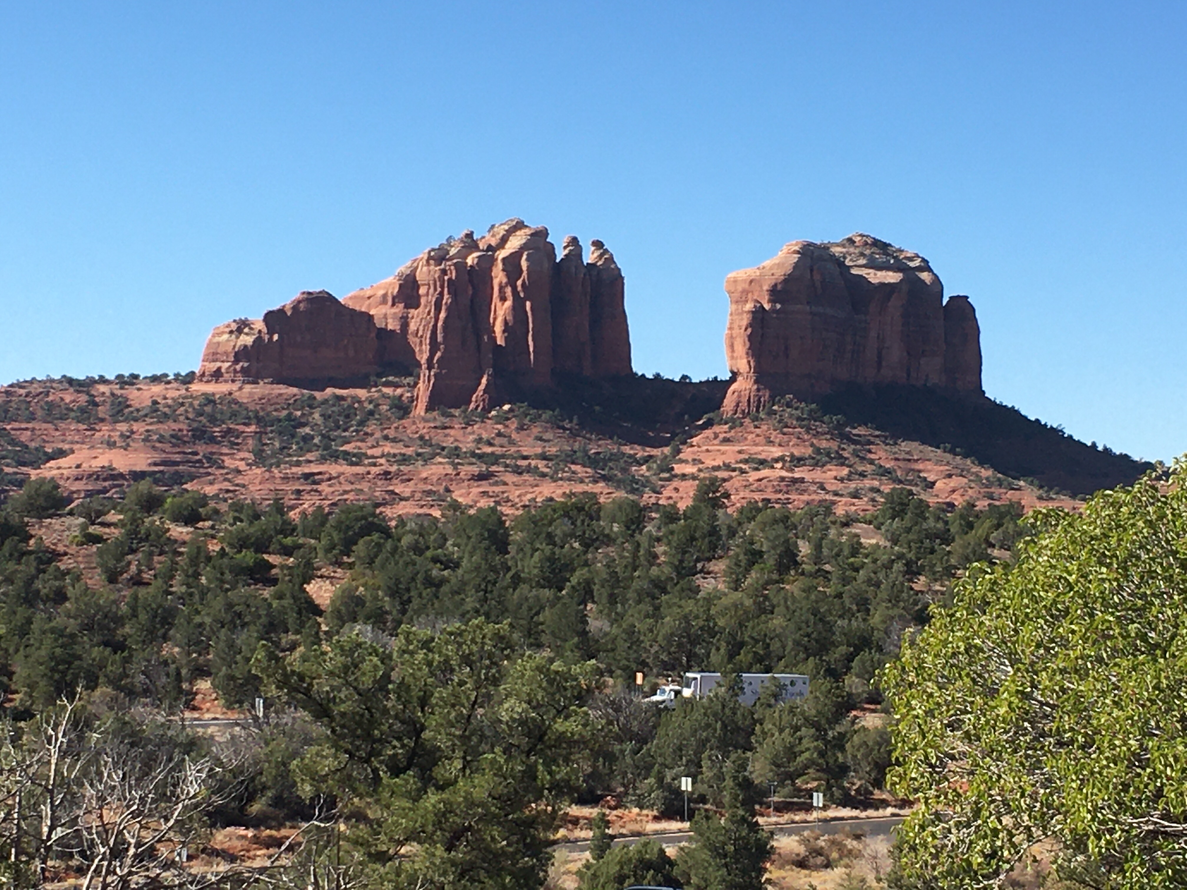 Wednesday morning same location but our adventure today is to Sedona, the village is a large collection of restaurants and souvenir shops, it is a beautiful little town but way to touristy for our liking. No this is all about the drive into and out of Sedona US-89A is the route and there is an elevation change of 2500 feet, maximum length of vehicle 50 feet, multiple switch backs, lots of sharp curves, narrow and busy, and one of the most beautiful drives you will ever take.