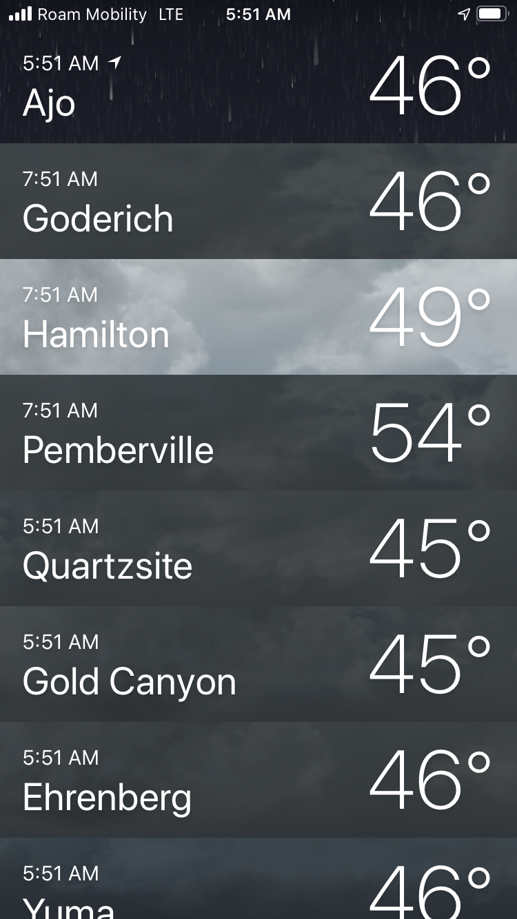 Who would have guessed Goderich Ontario would have been the same temperature as Ajo Arizona this morning? Well not I! And as much as I see it is, I still don’t have to like it, I know it’s just a temporary thing, but it is a thing that I am about over with…just saying. And with only five more days in Why before we move, I have one more project that I need to tackle, I can handle the cooler temperatures but I need a little more warmth to tackle it, so maybe on the weekend as today is our last day of rain for about ten days, but we are moving on the first of January, so I’m starting to get a little squeezed for time.