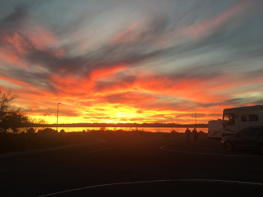 Well that’s not too tough of view out of our windshield…as the sunsets over Lake Havasu, looks like a great start to a very good week. We ventured out to the blue sign store today, to pick up some basic supplies, Miss Laurie is still self medicating with over the counter drugs, other that a few cough drops I have had no medication for over 36 hours. I have set up the outside chairs, got out the barbecue and fire pit, in fact we had barbecued burgers last night for dinner. And then I watch the news and find out Iran has fired ballistic missiles at US military bases in Iraq and just wonder where this is going. And as much as I do not have an answer, I do know it’s not going anywhere good, but then I knew that right after the drone strike.