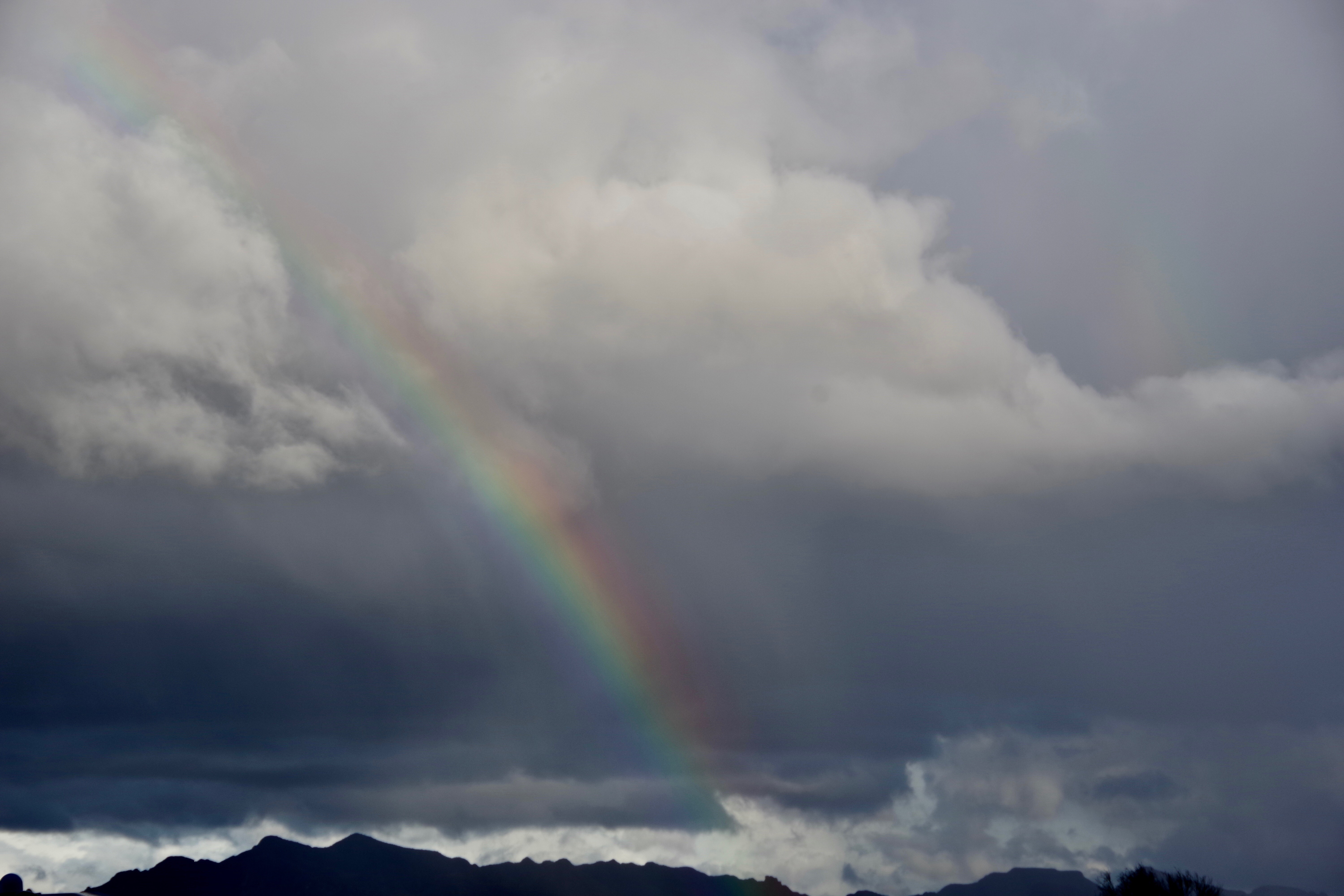 What we need to remember is that this week, Arizona may get over half of their full years rain fall. It was a very strange day with heavy rain, high winds, sunshine, thunderstorms, and rainbows. But as we turned in for the evening the sound of rain on the roof lulled us to sleep