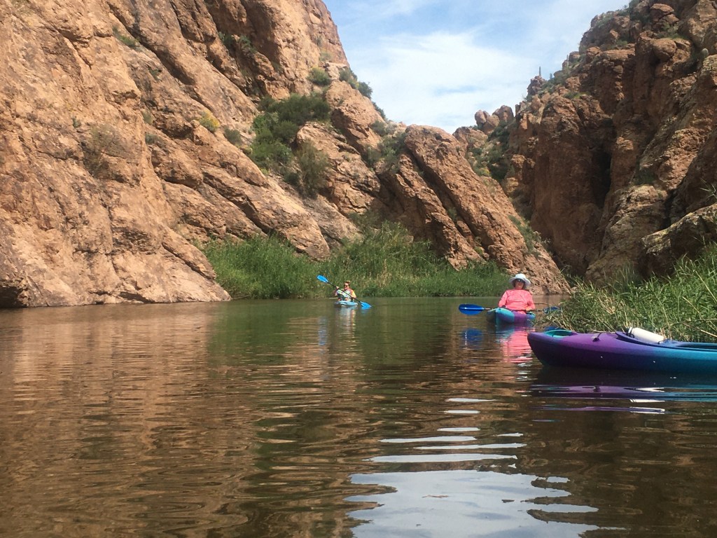 We have just made our second trip to this kayaking spot this week, joined by the Savino’s on a beautiful, clear, warm, sunny Arizona day. There are so many little kayaking spots in Arizona, that we were not aware of two years ago, the scenery, wildlife, water foul, where the desert meets the water, truly a magical area. Here is the Wikipedia description of the Canyon Lake area.