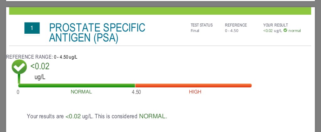 All you fellows get a PSA test done to give yourself a benchmark. And do it sooner rather than later, such a simple test and it saves a lot of lives!