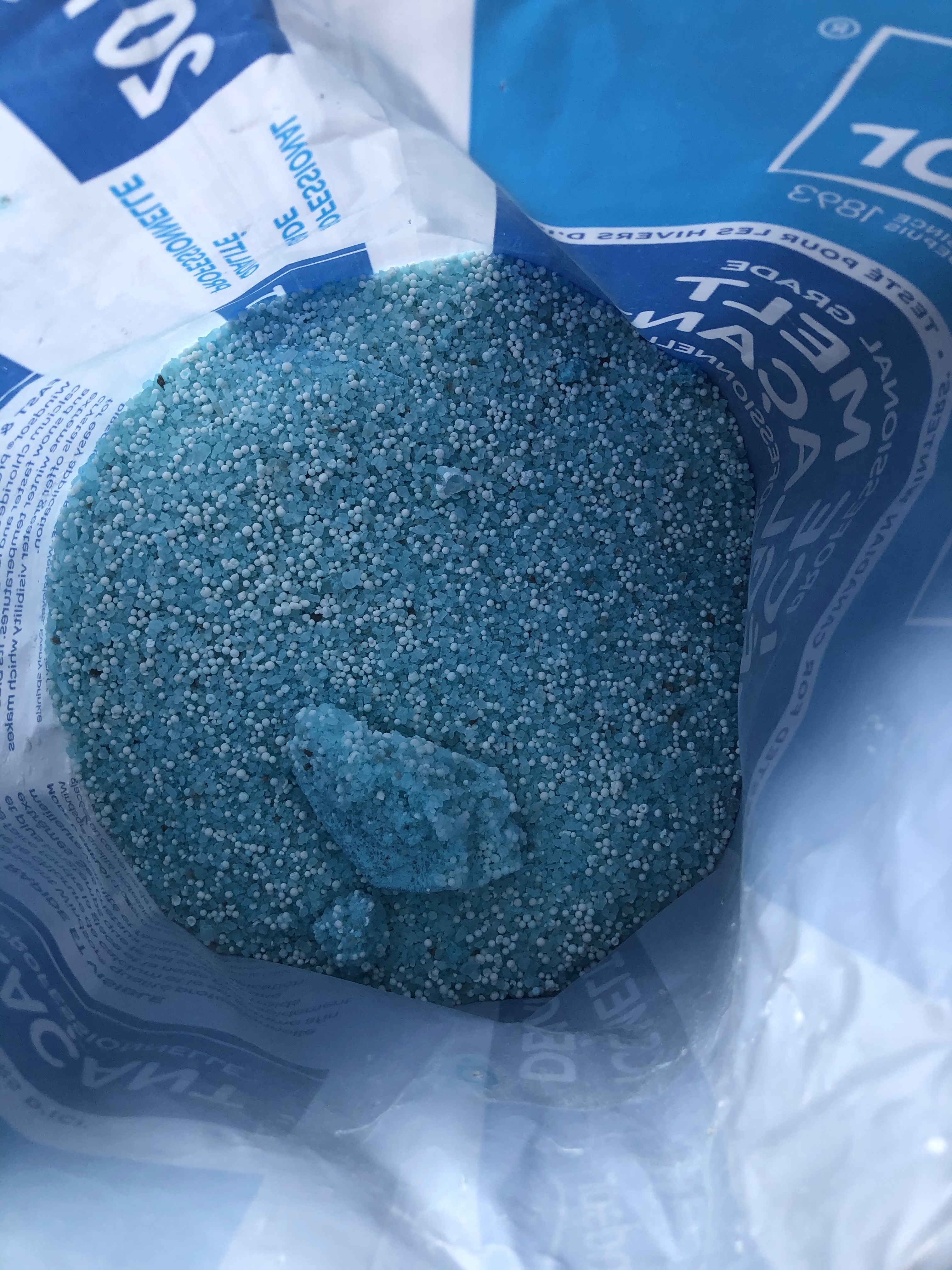 So today my essential item was some safety salt to remove the ice from our walk and drive. Because of the weight and difficulty in moving a couple of salt bags, I decided to order two bags from a local store for “curb side pick up.”