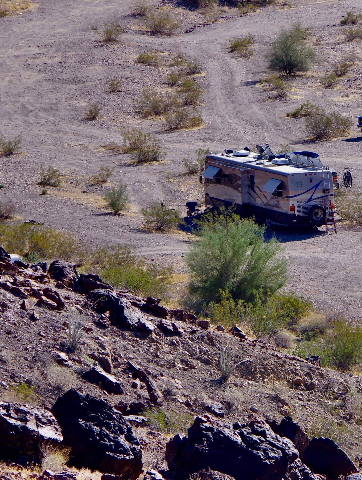 This spot is a real gem. And while we have stayed here on a number of occasions it is not the best suited to bigger rigs as it is very rough terrain. We have always managed to get a spot in the same area which is approximately a mile and a half from the highway it is always reasonably busy and closer neighbours than with a lot of dispersed camping areas. We have never driven to the end of Craggy wash but have been back two or three miles it is a narrow wash between the mountains and the beauty is amazing. During the winter months the mountains can shadow solar panels reducing input so careful planning is required