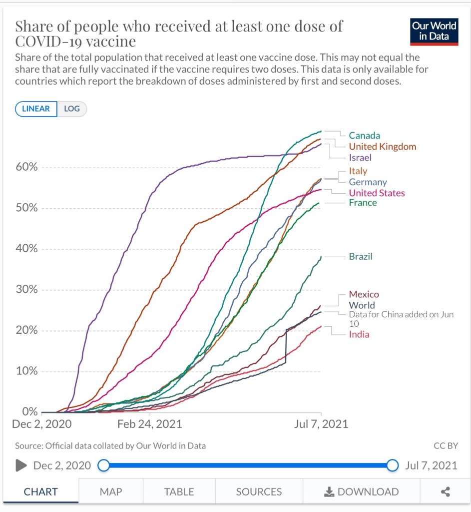 As you can see Canada has been picking up our vaccination rate after getting off to a slow start, with the world sitting at only 25%, I’m thinking the pandemic is not going anywhere quickly. And as Canada nears the 70% mark countries that had vaccines long before us are now falling behind, and one might wonder why? Every country will have their share of “non vaxxers”, I know we do and of course there will be a few “flat earthers” again we have some of those as well. And of course there are the special people that have been told by Dr. Facebook that it is all a government conspiracy to track our movement. Like seriously the government don’t care that much about your movements (bowel or otherwise) to inject you with a tracking device.