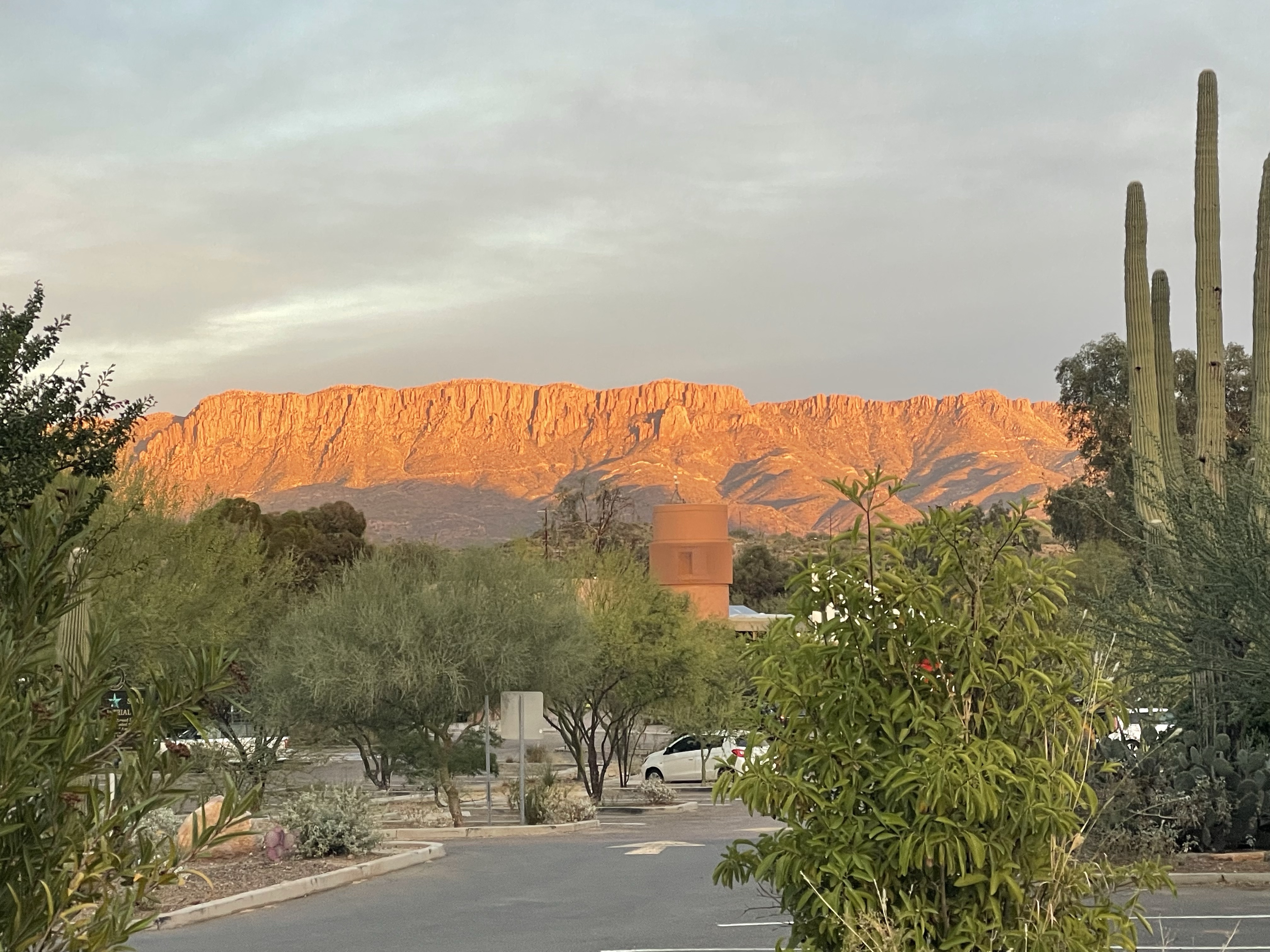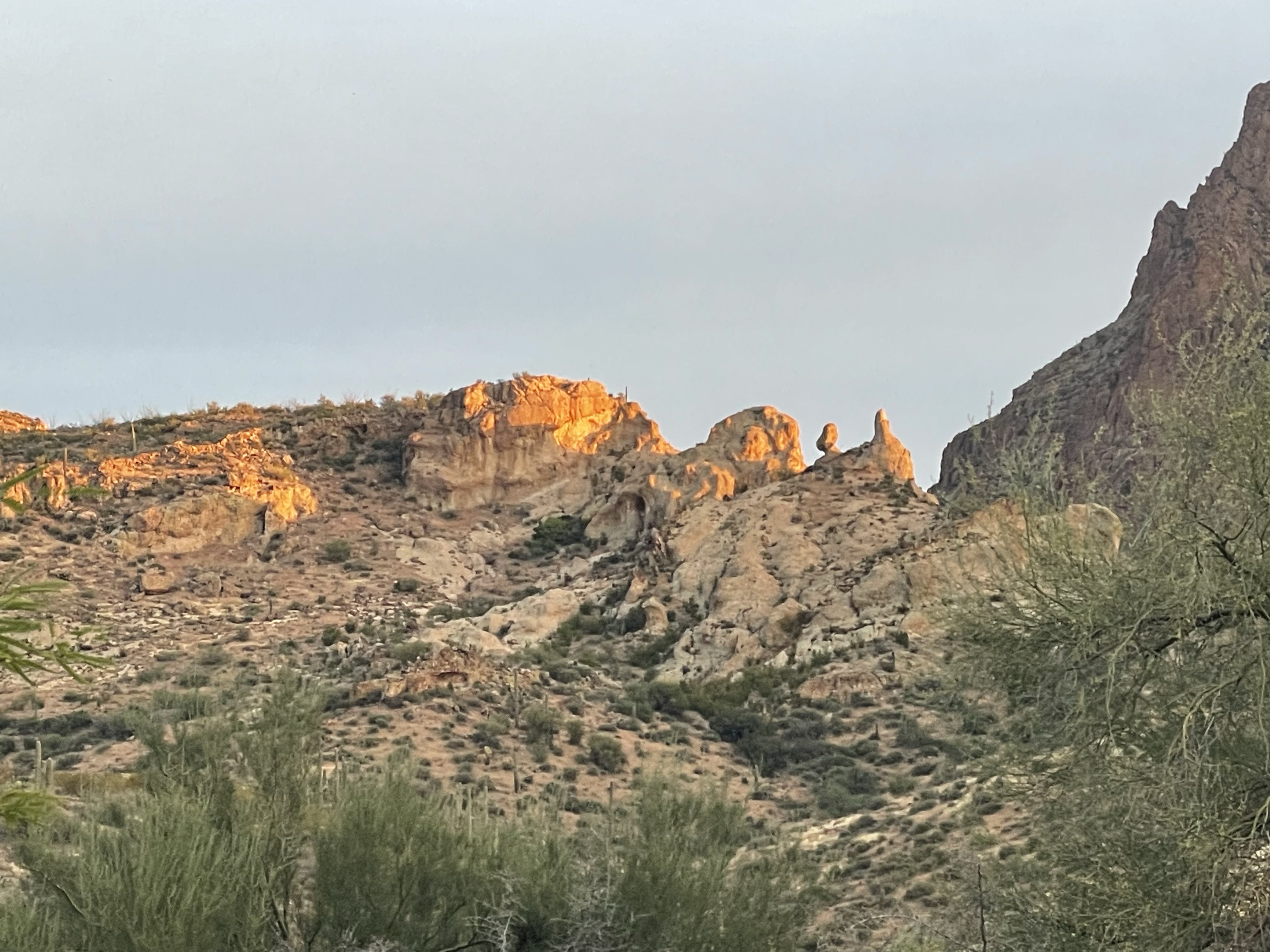 We decided to barbecue dinner tonight, it will be an early dinner, with our early start today I think we combined breakfast and lunch at 11am and it’s nice not to barbecue in the dark, So as I step out to start the barbecue the setting sun is hitting the mountains and I grab my phone for a shot, some of the most beautiful Arizona sunset photos are taken looking away from the sunset and at the mountains as they change colour, but this happens quick that I had to hustle to get the shot. There are a number of things about living in the mountains in Arizona for the winters, right now from sunrise to sunset is only 10 hours and we are still almost a month to the winter solstice, and they happen quickly as the sun rises from or falls behind the mountains.