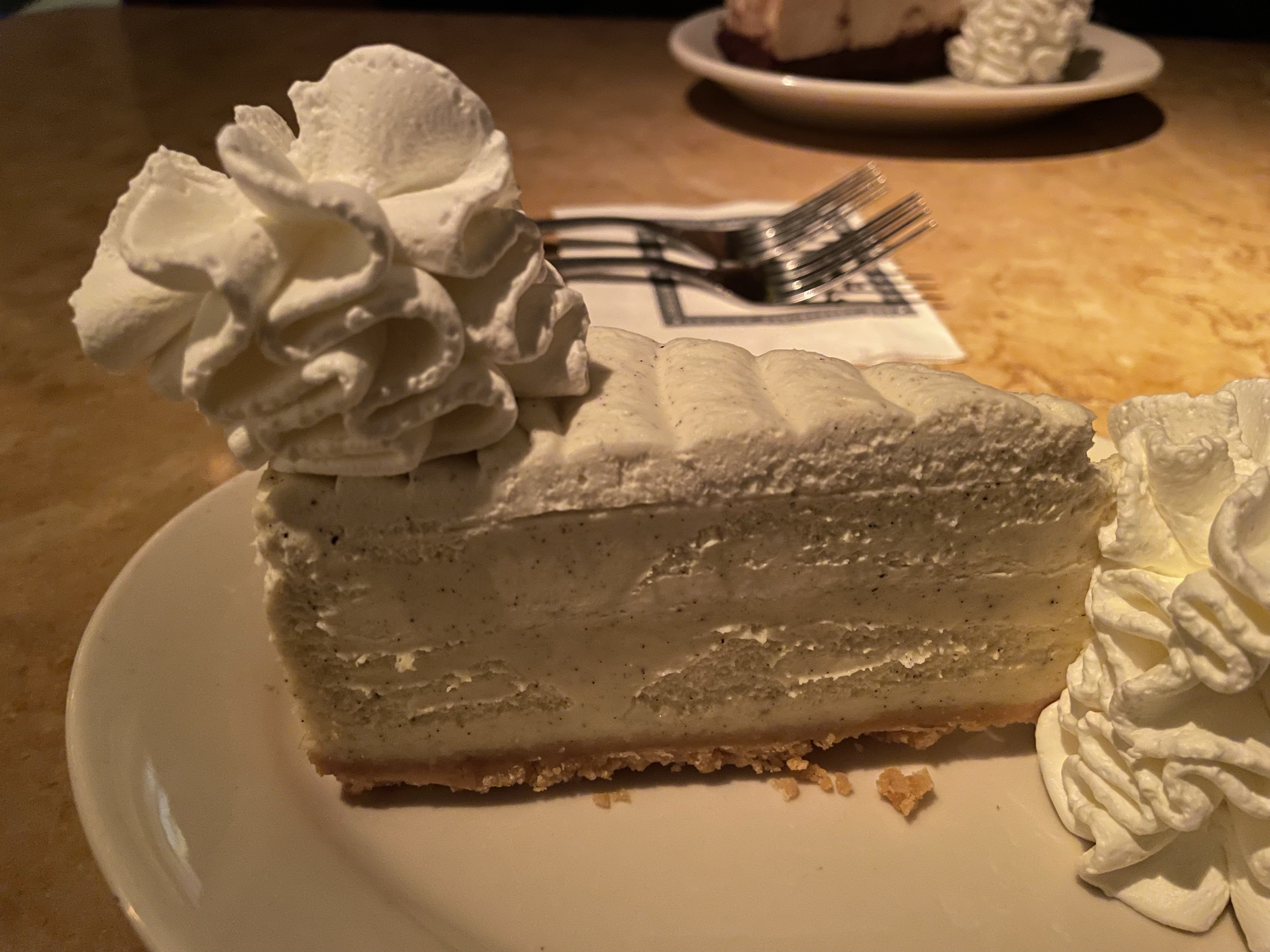 Now don’t get me wrong, I like The Cheesecake Factory as well, my problem is the size of the menu, it has to have over a hundred items, and don’t get me started on all the different cheesecakes, and I guess I just have a problem with that many choices. And the descriptions of each make them sound so damn good, so when you don’t have that go-to meal, like Miss Laurie, picking an entre can become a major task, then throw in a dark atmosphere and me in old prescription glasses this is now almost a job, well not really but it seems more challenging than having known what you want before leaving home.