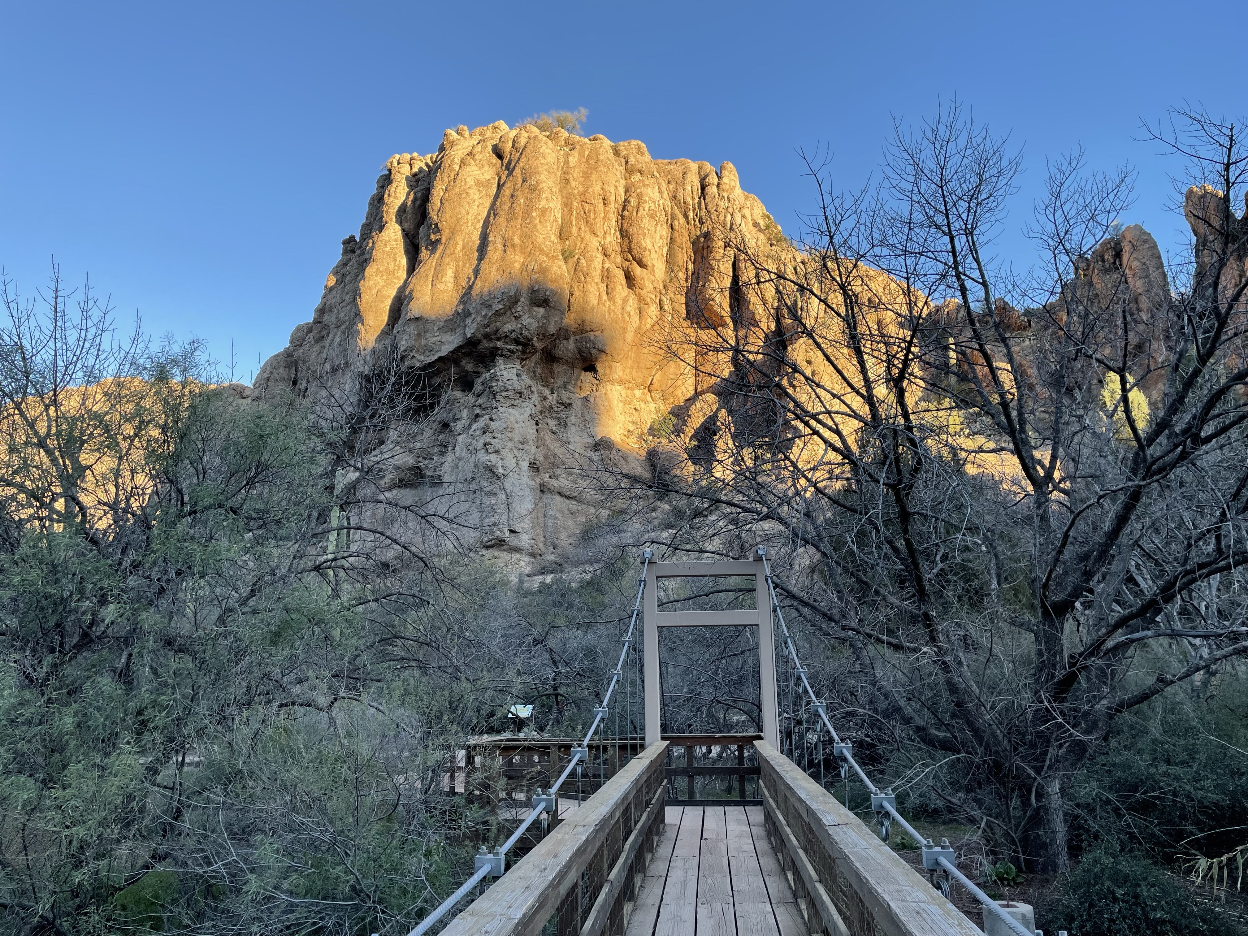 We stopped a number of times to sit and listen to the birds, I even jumped up and down on the suspension bridge, just like a child, I know I’m an old fart but there is just something about a suspension bridge that brings the kid out in most of us. The staff are making some much needed repairs on the Benson bridge, that’s the wooden bridge over the Silver King Wash, this was a bridge donated by the Benson family, after hearing stories of their father trying to cross the wash to lubricate the pump during some storms from the past, a great story that I have detailed in my Arboretum review that is soon to be published.