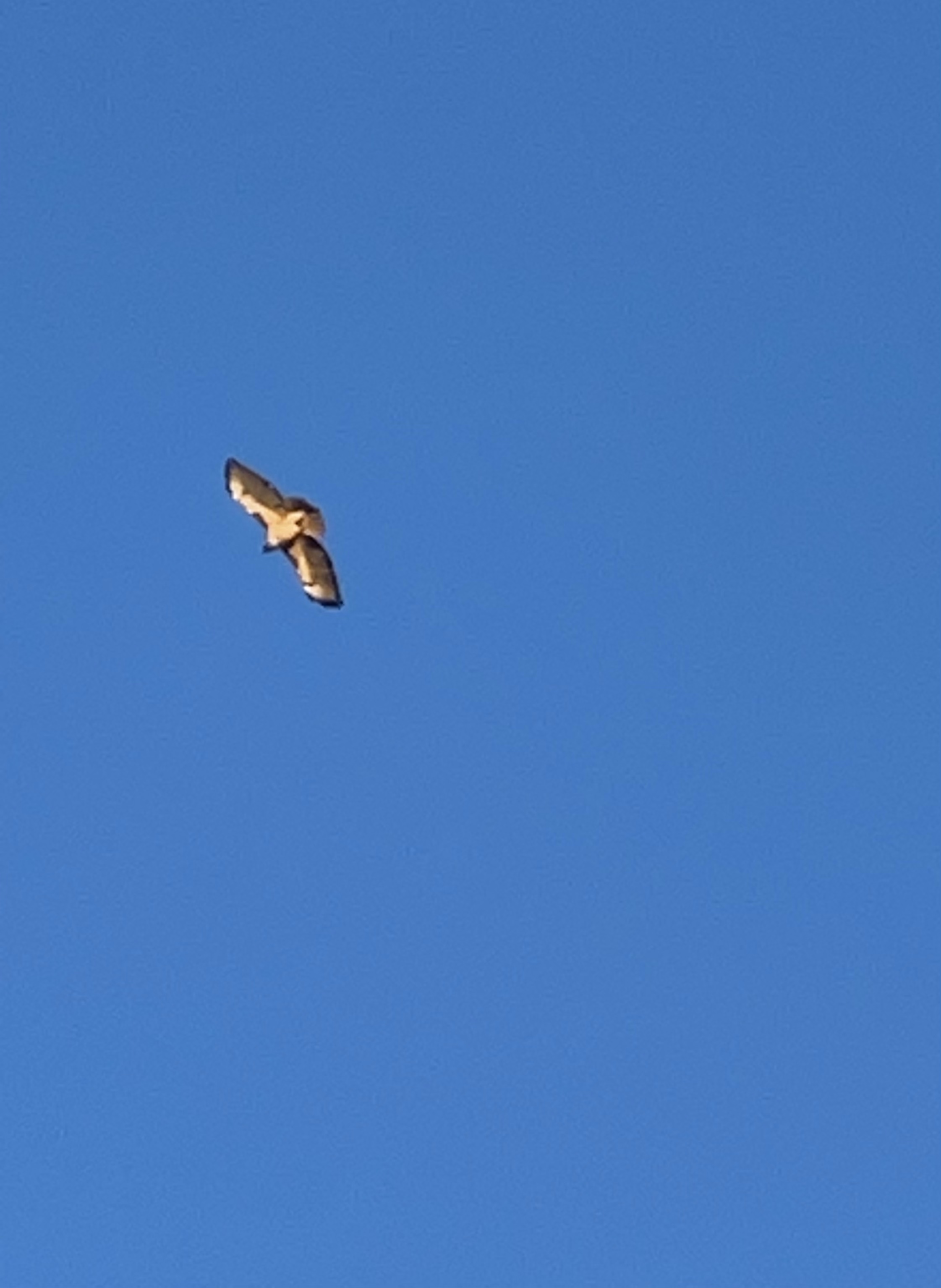 Just above the ridge was a large hawk circling, I tried to get a photo but with a moving target, an iPhone, zoomed out to 10x, lets just say it is not a very great picture.