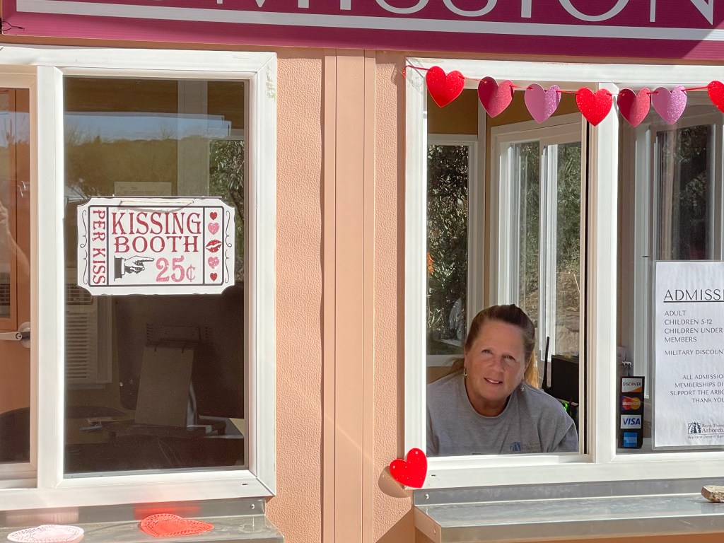 Well when I returned from lunch, I found that Miss Emily had decorated the admissions booth with some valentines and then I see the “kissing booth” sign on the window next to Miss Laurie, and there I was without any money. Of course that took a strange twist when I took over while Miss Laurie had lunch jus’saying. The wind subsided this afternoon, wind in the desert is a normal occurrence, but how they start and stop still amazes me almost as much as they way they change direction.