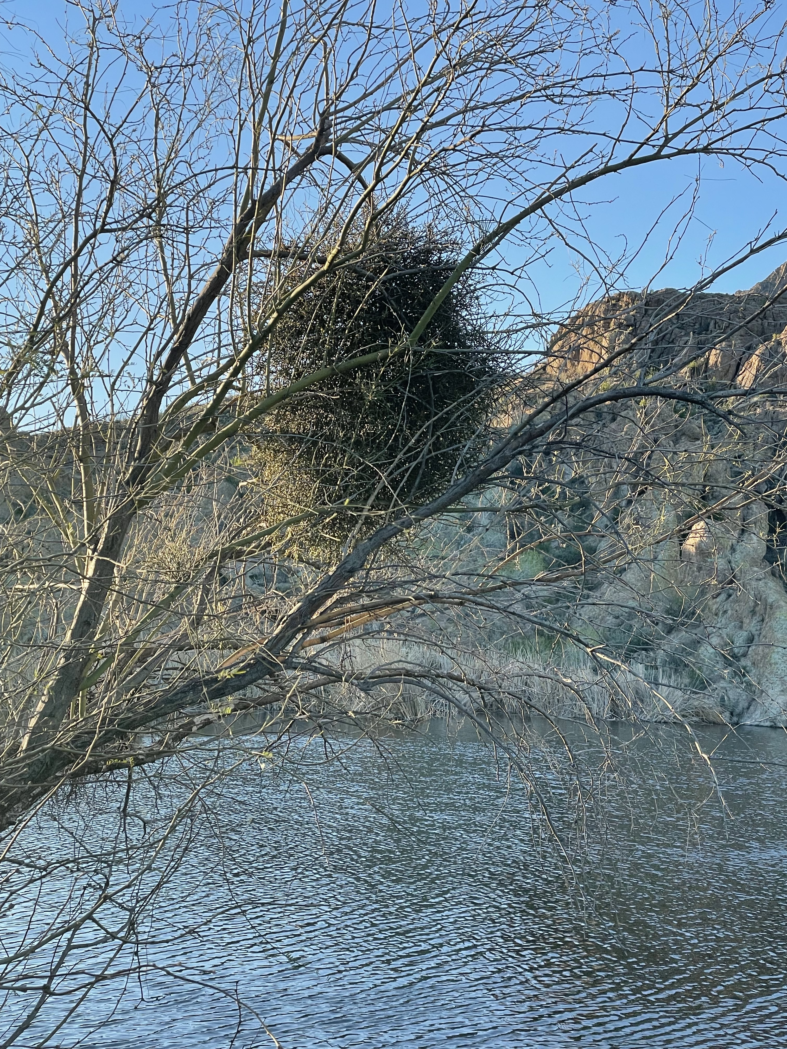 This is a common sight in the Sonoran desert, often mistaken by some people as some type of a birds nest. Often referred to as desert mistletoe, it is a leafless plant that gets its moisture and minerals from its host plant while preforming its own photosynthesis making it a hemiparasite.