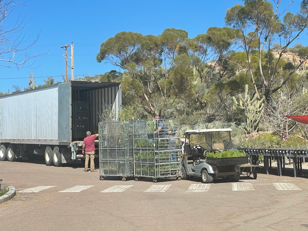 Our admissions booth has had another update, the addition of a second terminal to check in members, should help speed up the check-in process during the busy times. Today was not busy with only a few more than 450 visitors today, so Miss Laurie helped label sale plants this morning while I worked admissions, the Laurie worked admissions while I watered all the sale plants.