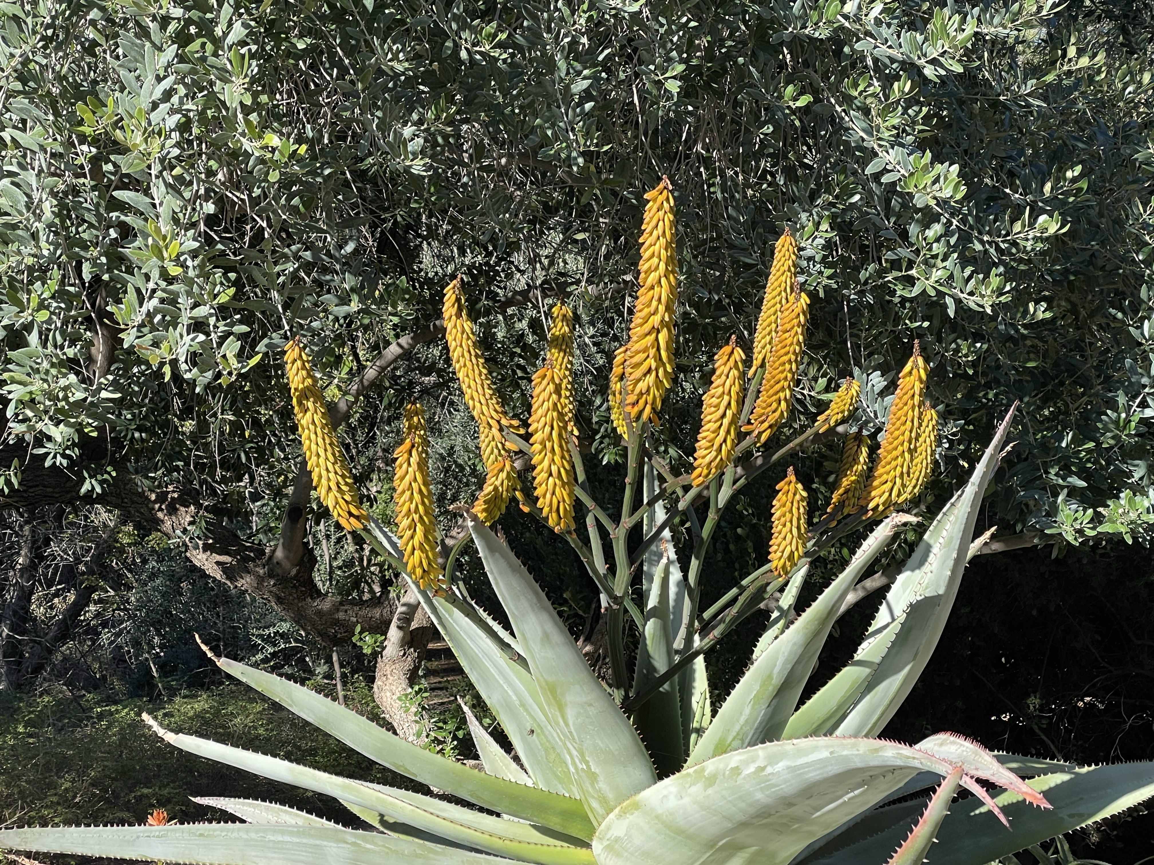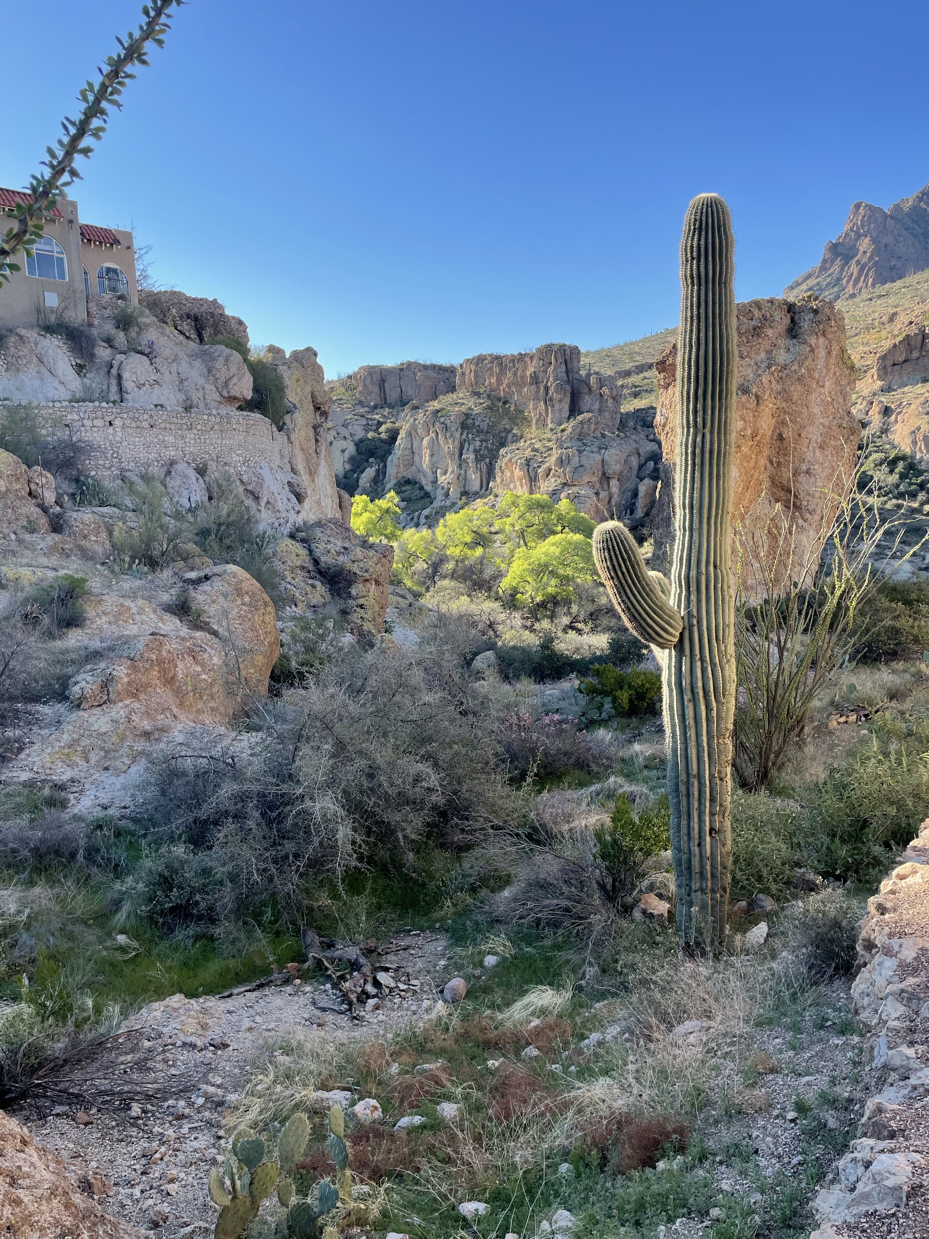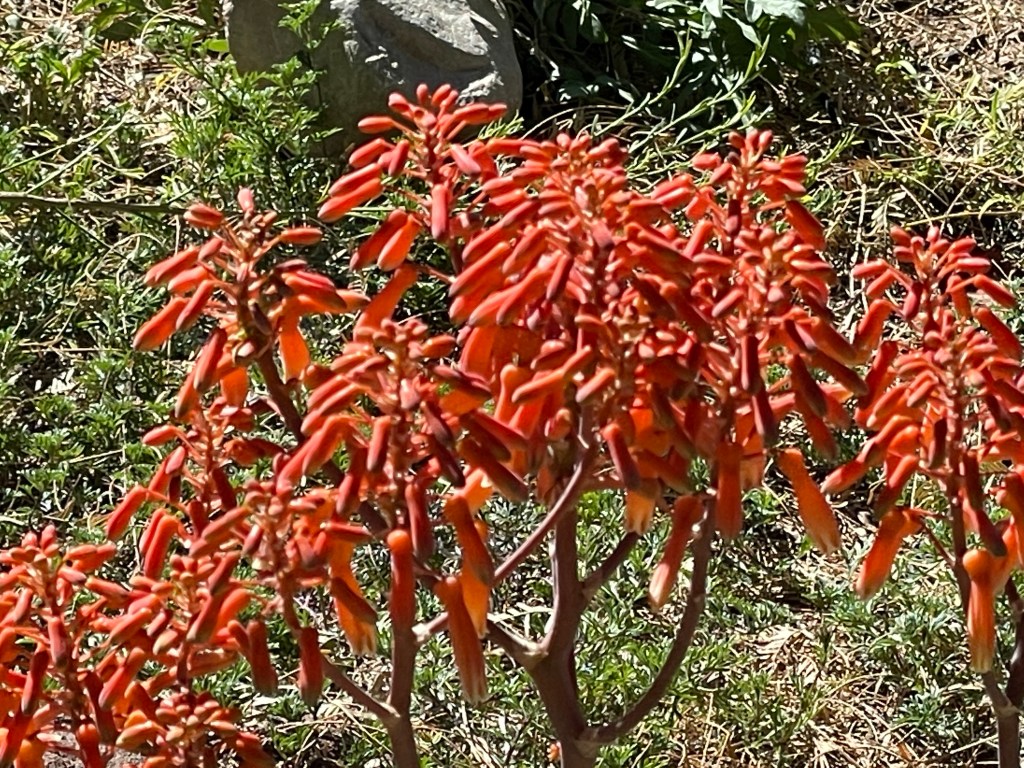 The blossoms on the Joshua tree are huge, and almost every branch has a flower now. And now we have some red “Danger” tape at the end of the Benson bridge that was certainly confusing the poor hummingbirds, but alas the elusive worker was nowhere to be seen.