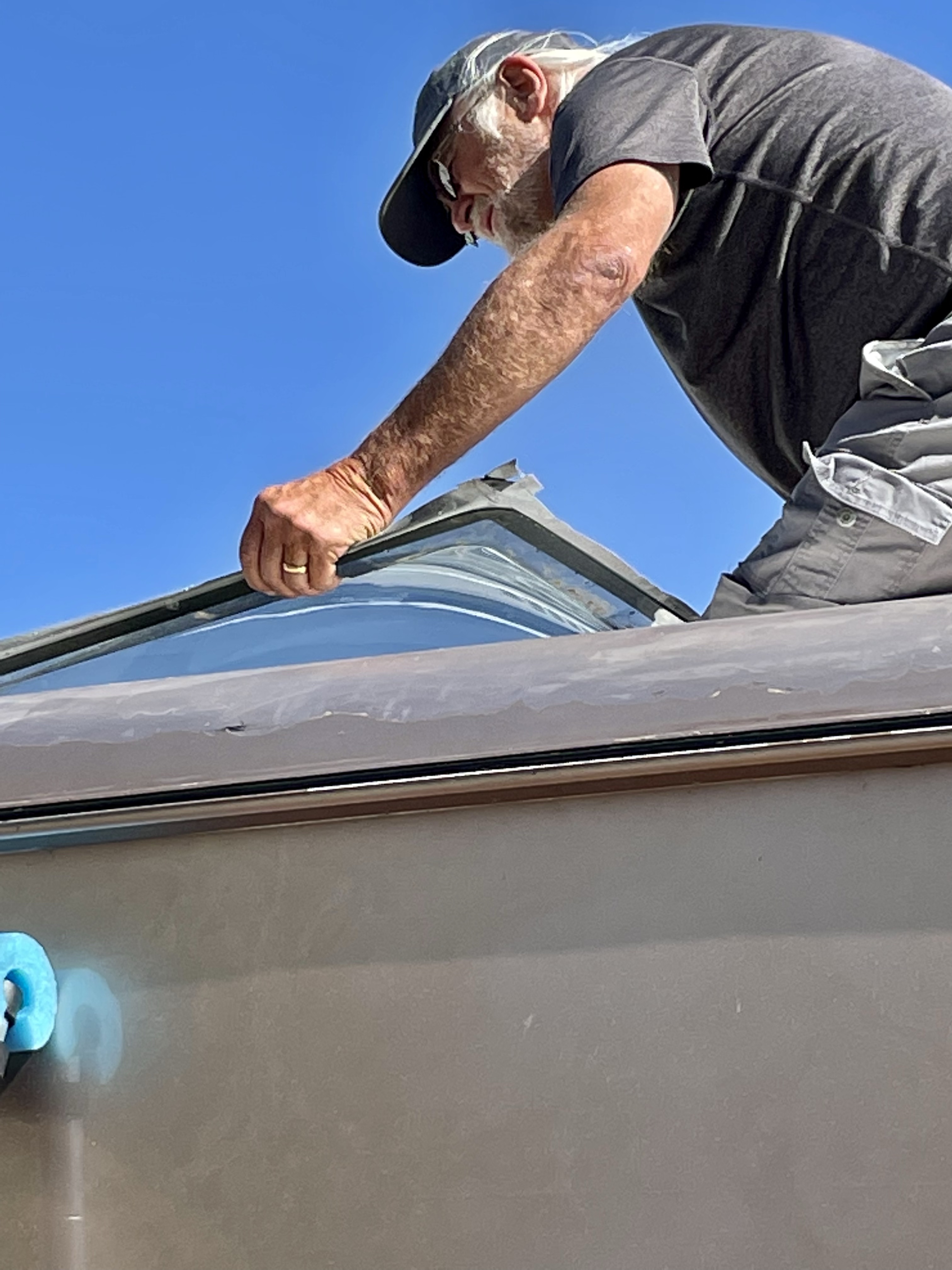 So after work today I did the next step in the process for the installation of the new skylight, a little repair of the fiberglass surrounding the opening, and tomorrow I should be able to prepare the roof to fit the new skylight, so either tomorrow after work on Monday it will be in place, and sealed, after many resealing efforts.