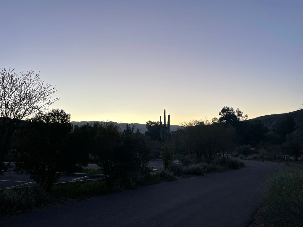 On our journey back to the coach, we made a supply stop in Gold Canyon at the Basha’s grocery store, and we’re still able to get back to the arboretum before the gates closed. It was a busy day with lots of things going on, so it was nice just to lean back for a while. Dinner was barbecued sausage, with cold slaw and potato salad, before watching a couple of episodes of “This is Us” before turning in (a point of correction, we are still a whole season behind on this series) for an earned rest.