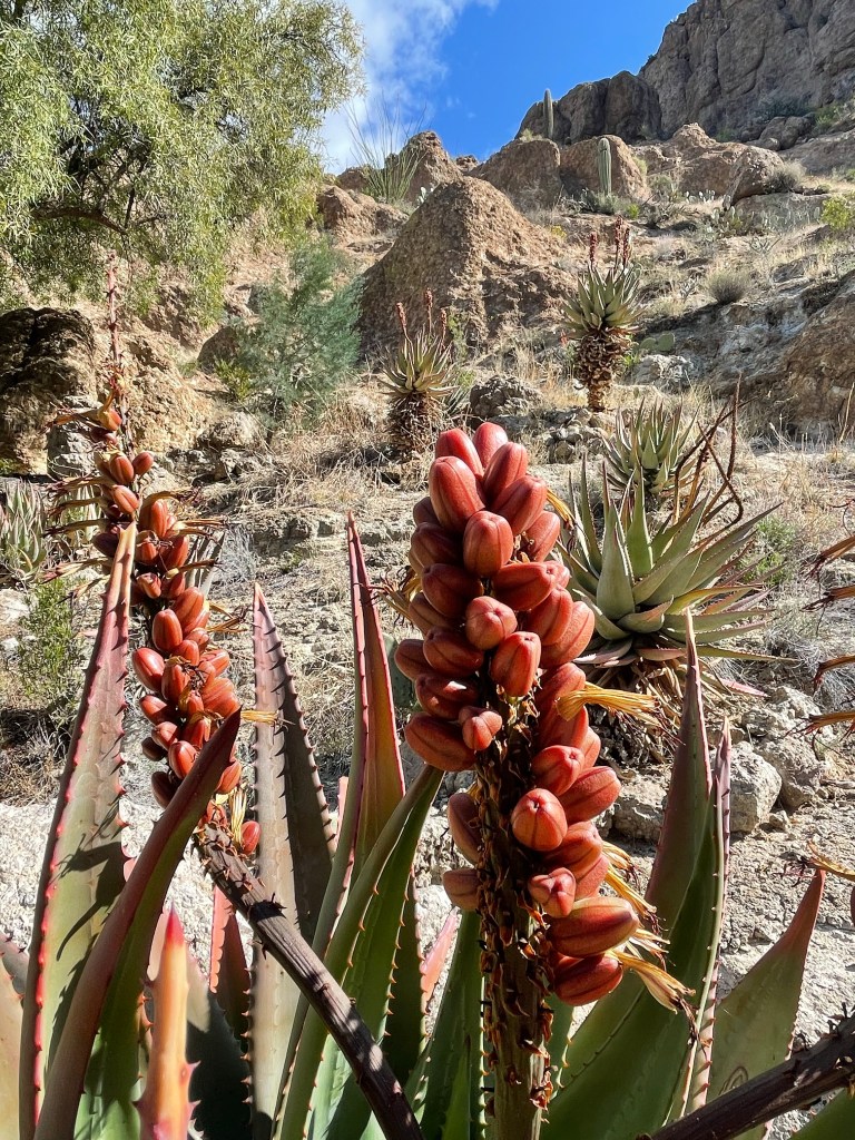 We went for dinner at the Silver King Smokehouse & Saloon, we headed there at around 4:30 to join Tom & Kathleen who went to get a table. Only to discover that a number of items were already sold out, so no brisket for Brian today. But we made the best of it with pork butt, smoked wings, loaded fries, and a wedge salad, and we brought home enough leftovers to make another dinner of pulled pork. Ray & Karen dropped us off at the gate of the arboretum before heading back to their park in Gold Canyon.