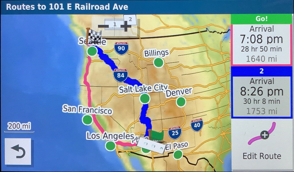 I have also upgraded our GPS system, there were a couple of reasons for upgrading now, first our Garmin was five years old and in electronic years that is a long long time, with lots of improvements. But the main reason was that when asked to map out our route to Vancouver Island the old Garmin had one route and one route only, while Google Maps as well as Apple Maps came up with at least two routes and sometimes three. If we we just heading back to Ontario, a route we know well, we may not have upgraded yet but this is a new route with lots of mountains so it seemed the right time to upgrade. Now add a great sale, along with so many upgrades, it just made a very compelling case to upgrade now. The new Garmin also has Wi-Fi so it has already upgraded its software as well as the maps and now it is suggesting two different routes north. I will do a blog on the new Garmin after I have used it for a while, as it’s not till some time on the road that we start to realize just how good it is.