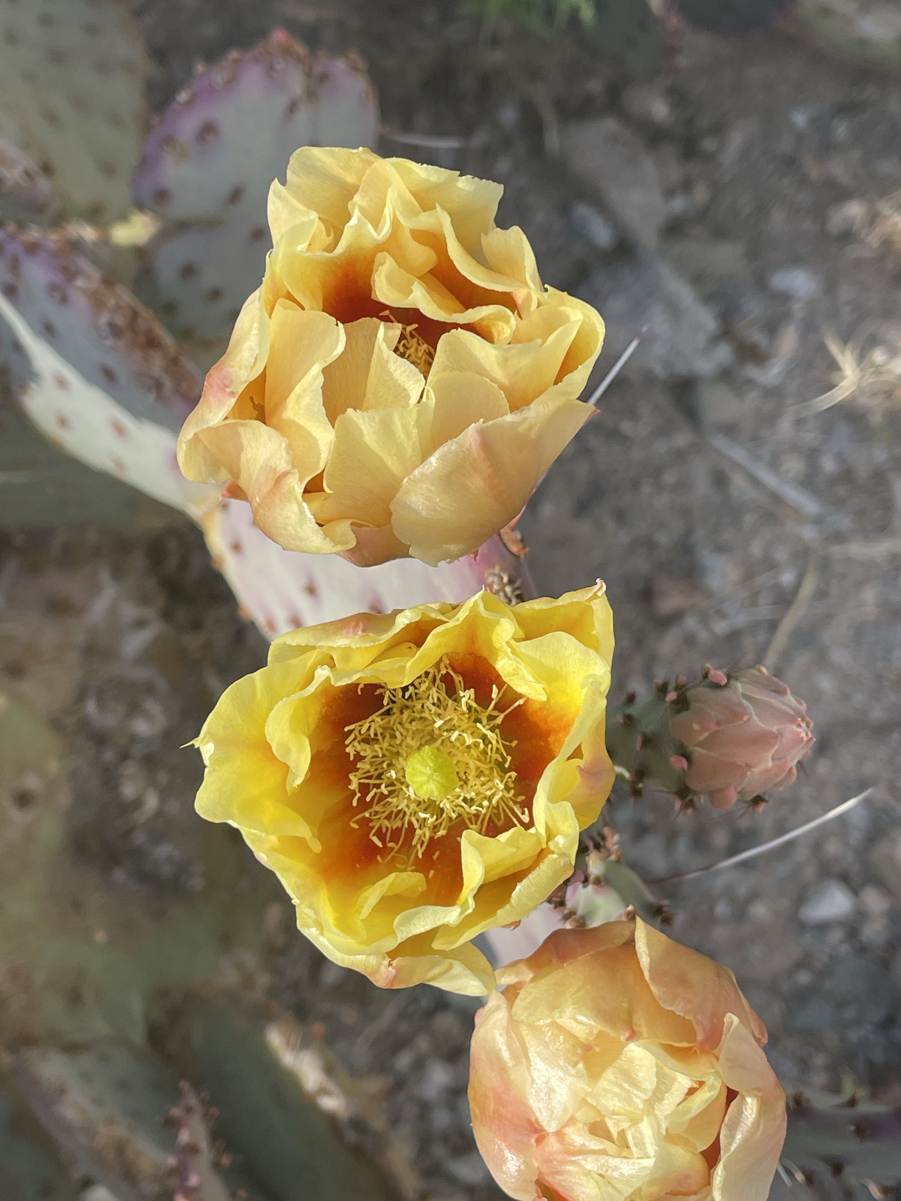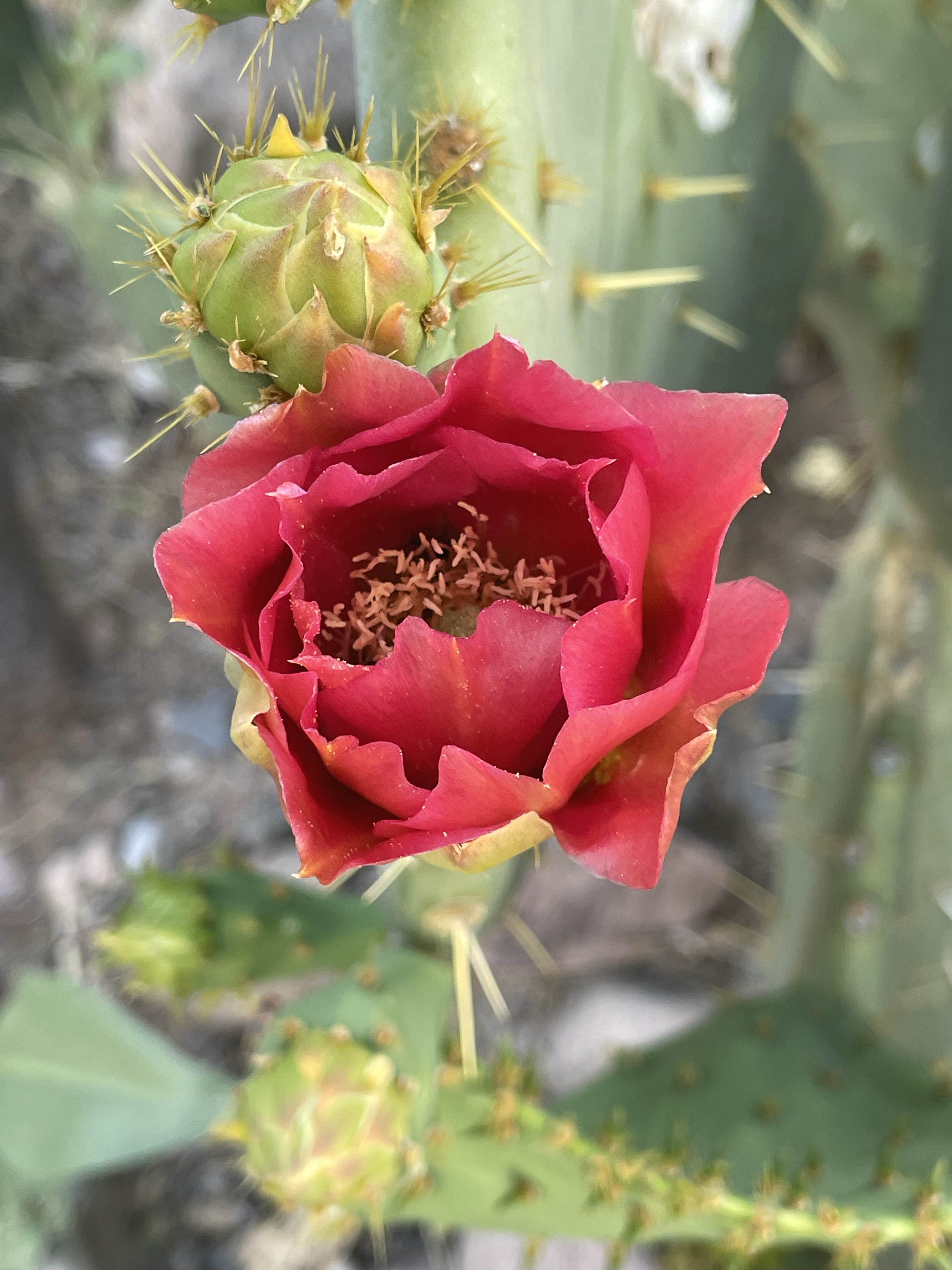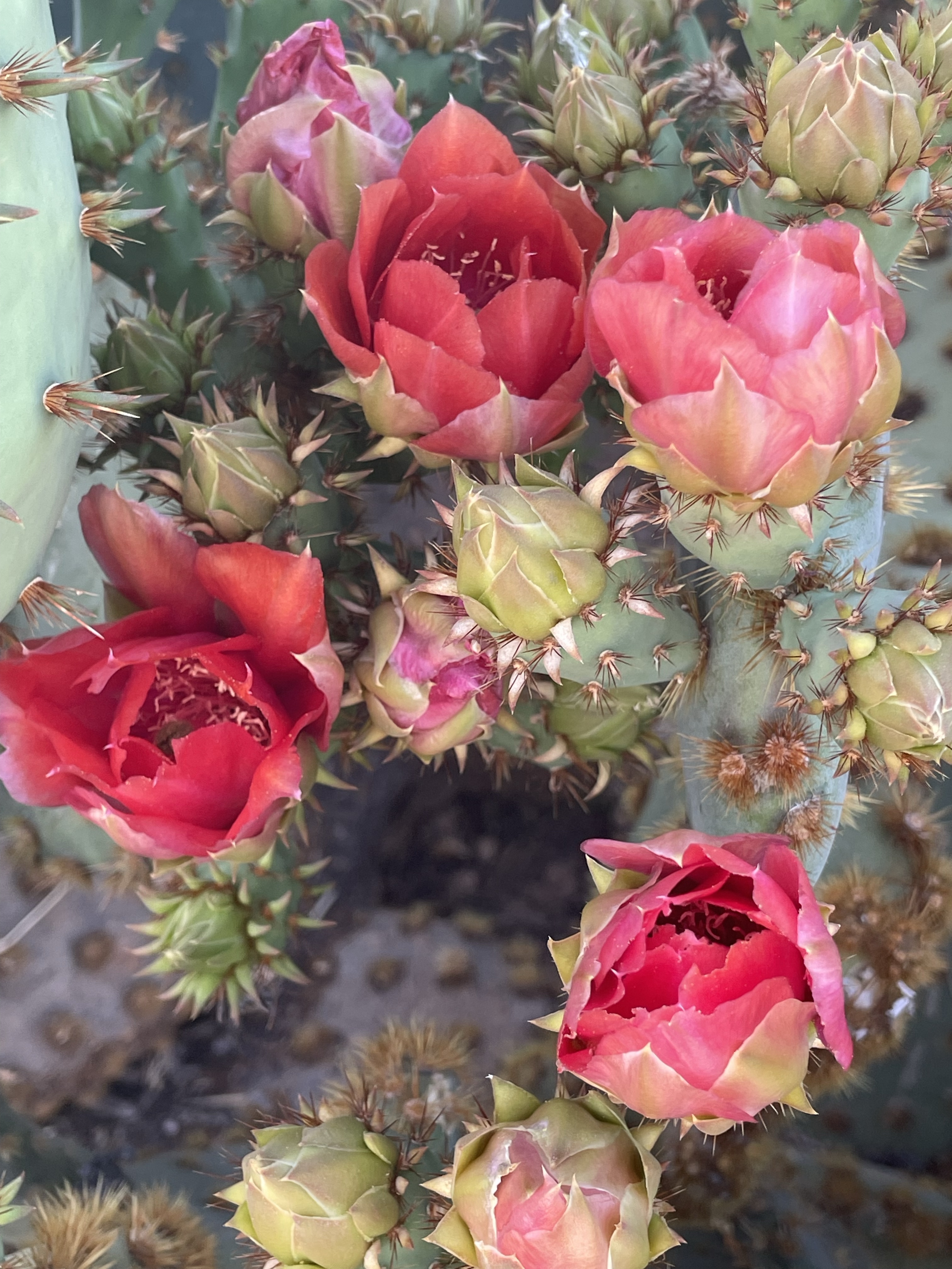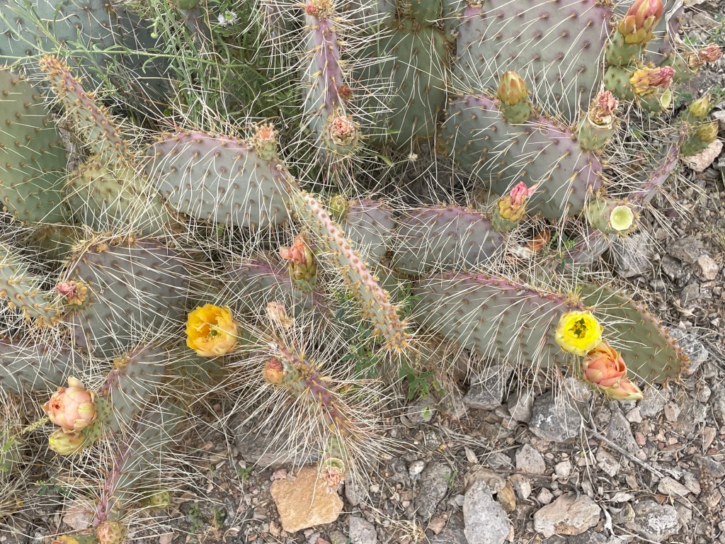 It wasn’t a real productive day with my main task, staying cool and keeping re-freshed, this is where we are supposed to throw in that it’s a dry heat, with a humidity of only 7%, and all that really means is that your beverage stays dryer, with no condensation running down the side of the glass. But it was still damn warm on the patio, I’m trying to use the dictation feature on my iPad, to get the information down for the blog, but obviously my iPad thinks I have some sort of speech impediment. The photos below are from this afternoon’s walk in the arboretum it is prickly pear season.
