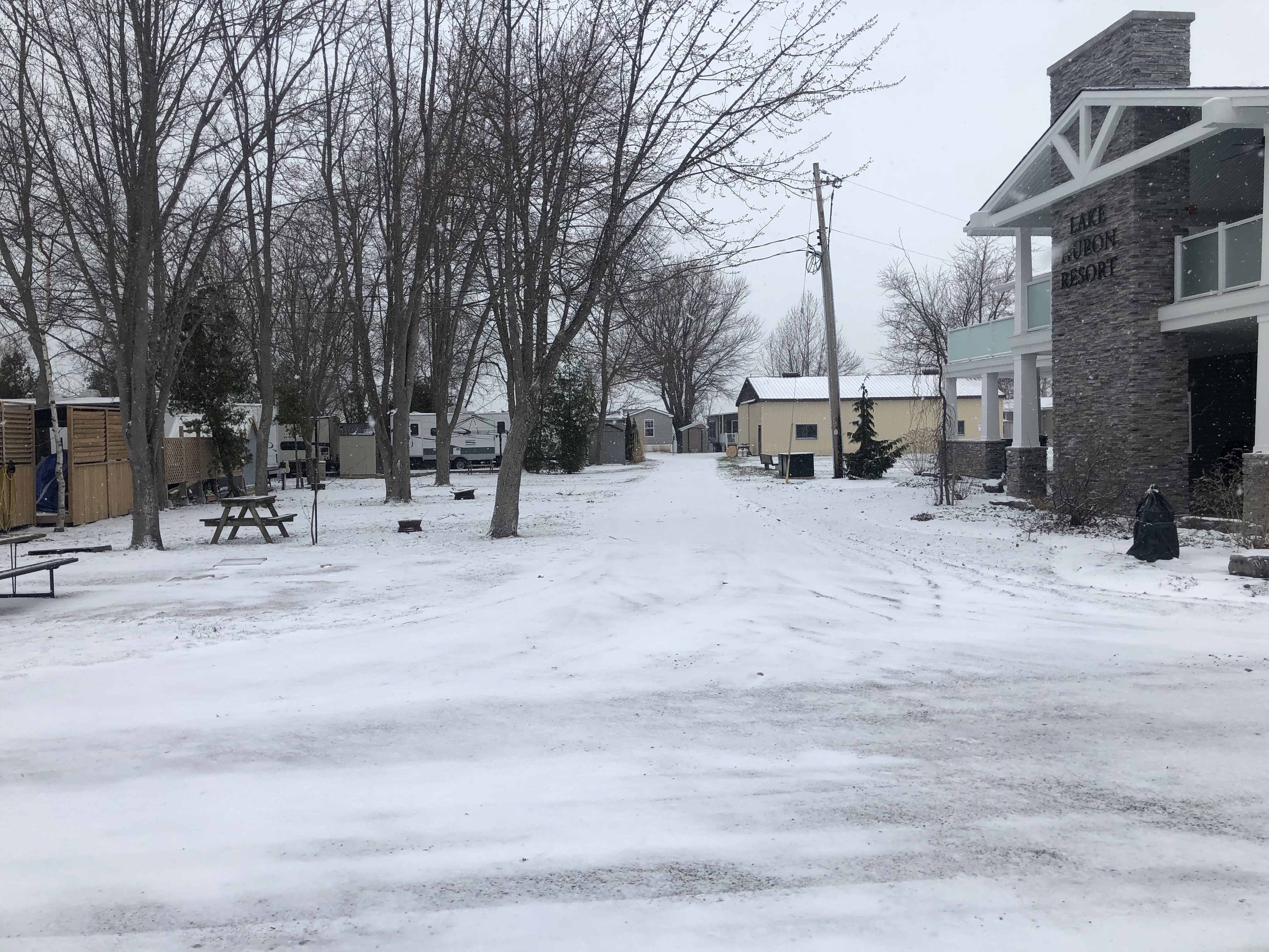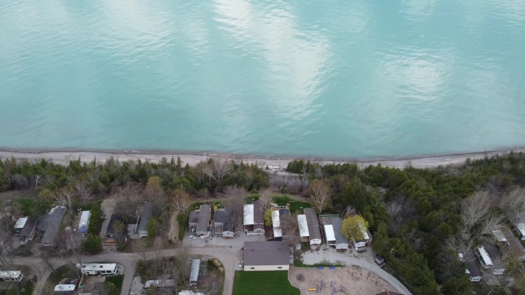 Now remember we are full time RVers, we have no house to go to, and as we had fourteen days of quarantine to go through our choices of places to go were limited. We needed some place safe, we needed some place where we could just kind of hide away, so we needed a favour from someone, a driveway, or a spot just out of the way somewhere. We felt we had enough supplies to make it the 14 days, enough solar and generator power, enough fuel, enough food, even enough toilet paper. What we needed was more fresh water and to dump our tanks, we were already nine days since our last tank dump. So we were headed to Lake Huron Resort to dump our tanks and refill our fresh water tank, whether we would be able to stay at the park was still being debated. Parks were being told not to accept returning snow birds, but because we were actually working at the park it was decided that we would stay at the park to complete our quarantine.