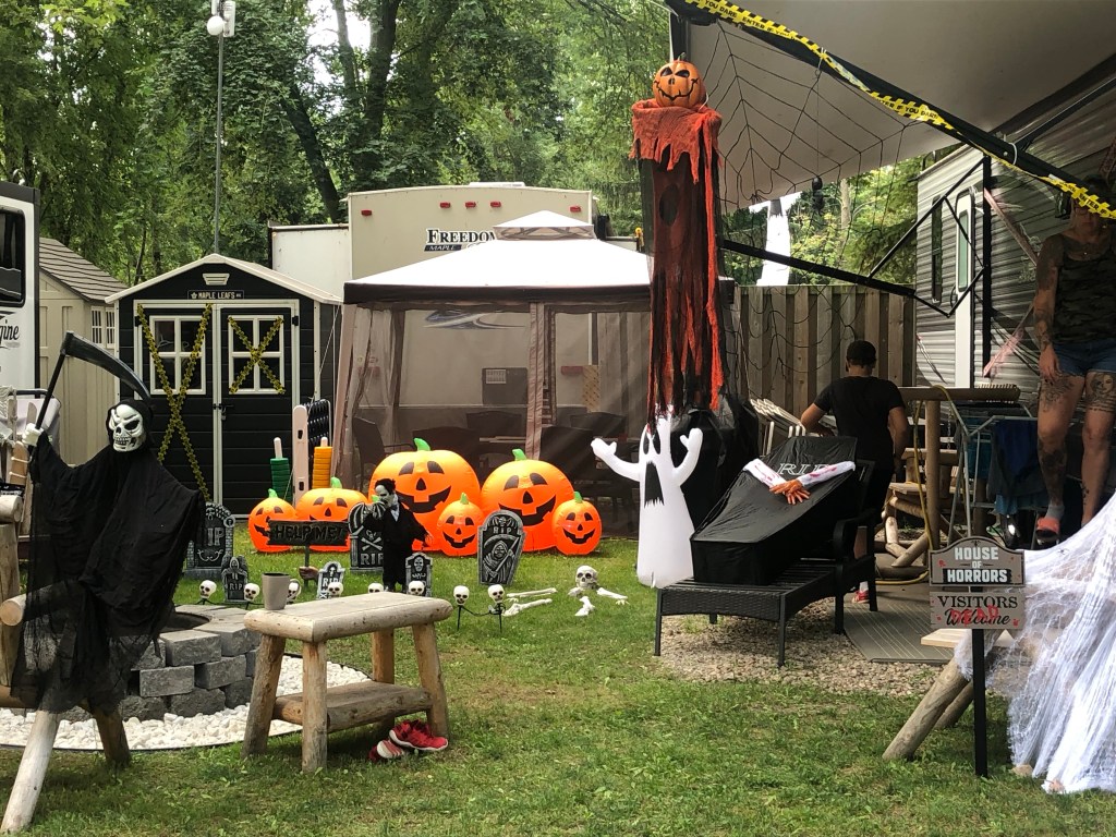 August 28th is Halloween at the park, now there are a lot of children in the park now, and most seem very active already so I’m thinking an afternoon of collecting sugar (candies), I mean what could go wrong there? As Miss Laurie has to be in the store, she has designated me to hand out the candy and she has also designated me to be a pirate Rrrrrr. And just before the festivities commenced, I was called away to repair an electrical box, southern Ontario is in the grips of a hot, humid period so everyone is running their air conditioning steady so they are pushing the equipment limits.