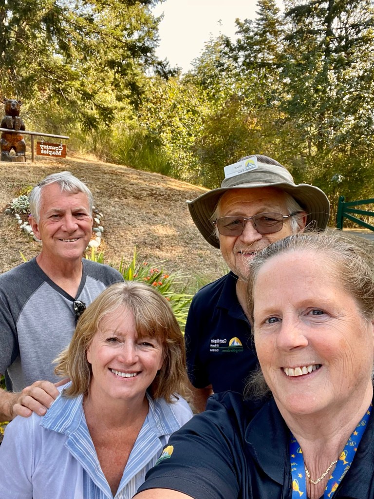 Today was a normal day, the pool opening, then the site clean ups, I had a complaint about a power supply from a camper pulling out, and while I thought it was just a big 50 amp trailer trying to work on a 30 amp site, when I checked the concern there was a legitimate problem with an open ground, so I switched out the panel with a reconditioned one. After lunch while I was finishing up a couple of small tasks I got a text from Miss Laurie that we had a visitor at the office, so I headed up the hill to the office to find Tim & Linda, our site neighbours from our time at LHR (Lake Huron Resort). It was a great surprise and certainly very touching that they took time out of their vacation time to look us up, just another example of the family that we have built from this lifestyle. Thank you Tim & Linda