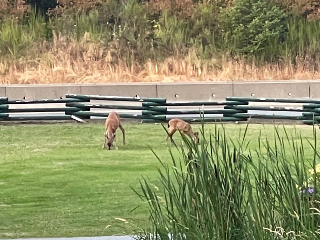 So I spent part of my shift watching the deer on the lawn at the entrance to the campground, there were five deer there at one point. Part of my closing process is to check that all the doors at the office are locked, but my trip up the hill to the office tonight came with some wildlife, always a bonus. I also found that as long as the pool is still open the two hours allowed is not enough, it may be enough time after the pool closes, and the 10:00 till 4:00 shift is crap, so next split shift I pull, I will be working 8:00 till 2:00 and then taking the afternoon off which will allow 5 hours before doing the lock up & security part.