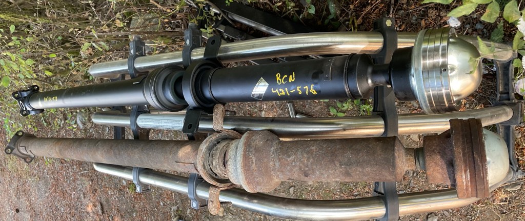 In the infinite wisdom of the Ford engineer’s they decided to make the driveshaft a disposable (unserviceable) part. Luckily some shop back in Ontario decided to reengineer the driveshaft to be a little easier on the pocketbook, so the $1200 was less than half the cost of a new Ford driveshaft, and this is in leu of changing for a $15 hanger bearing and a $50 universal joint, yea I’m sure that must had made sense to an engineer, because it sure as hell doesn’t make sense to a mechanic. But by one o’clock the new shaft is in place, and I’m in the process of cleaning up, after battling with 12 point headed 12 millimeter bolts, like why? Was there a surplus box of these stupid bolts kicking around or what? But it’s days like this that cause mechanic’s to drink … possibly in excess … jus’saying.