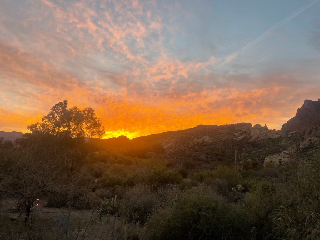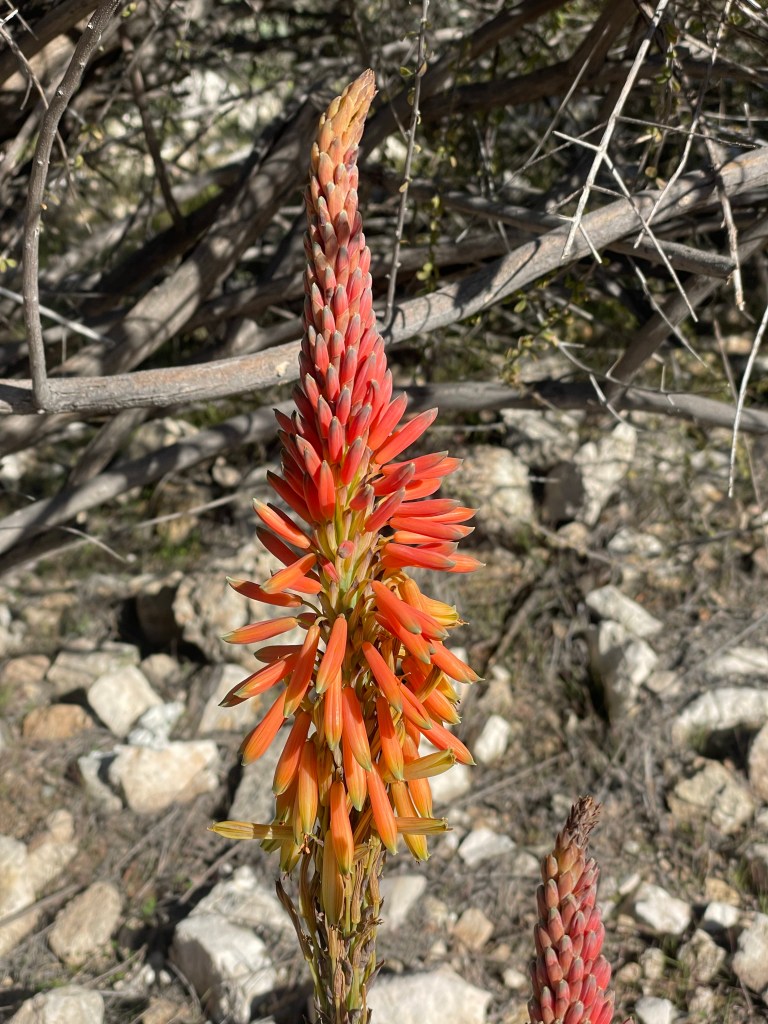 Here at the Boyce Thompson Arboretum we are seeing signs of spring with regular spring flowers like daffodils, and of course there are aloes in bloom from around the world that seem to bloom all through the spring time period. We still are seeing covered plants through out the arboretum, as the staff work to protect the most temperature sensitive of the plants. But there is no way to protect everything with in the 135 acres of maintained gardens, and covering material is limited, so choices have to be made, some choices we may not agree with, but people way above our pay grade have to make those tough decisions. The sunrises still are wonderful and I’m up to see most of them, at least for now, I haven’t been walking in the arboretum as much as normal, either because I have become a wimp from the cold weather, or all this cold damp weather is causing havoc with my old bones. But I get around enough to see that there are definatly signs that spring will be here in Arizona soon.