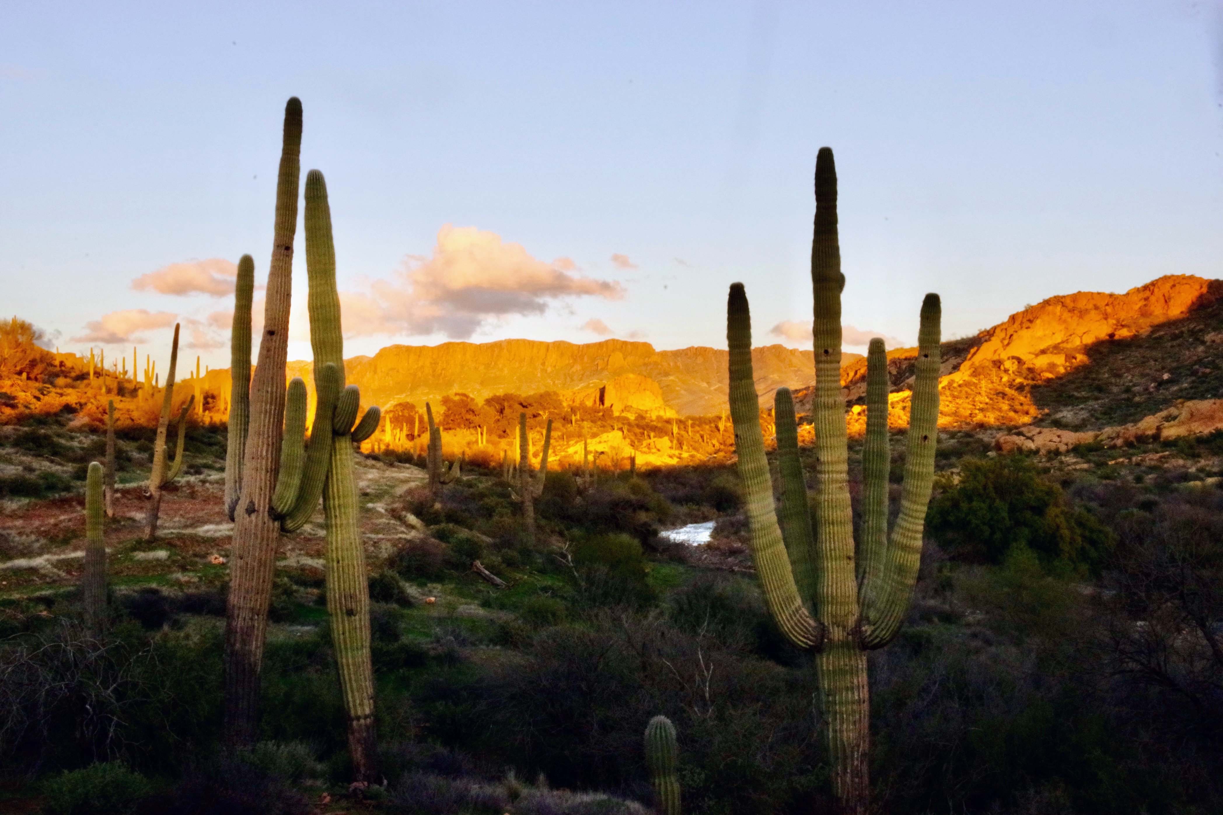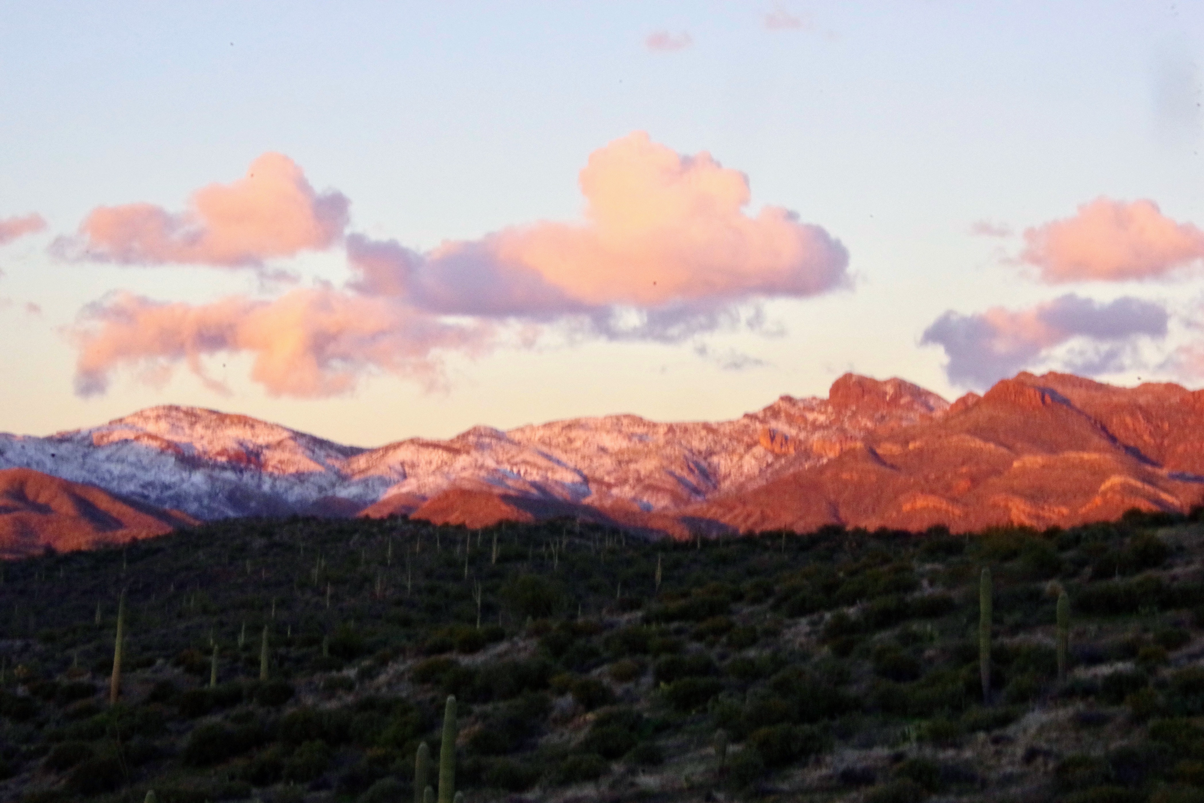 But the good news was that by eleven o’clock most of the snow was gone, and just a few scattered rain showers were the norm, till near one o’clock, and then in true Arizona desert fashion the clouds started to break up and Miss Laurie was able to snap some great desert sunset pictures.
