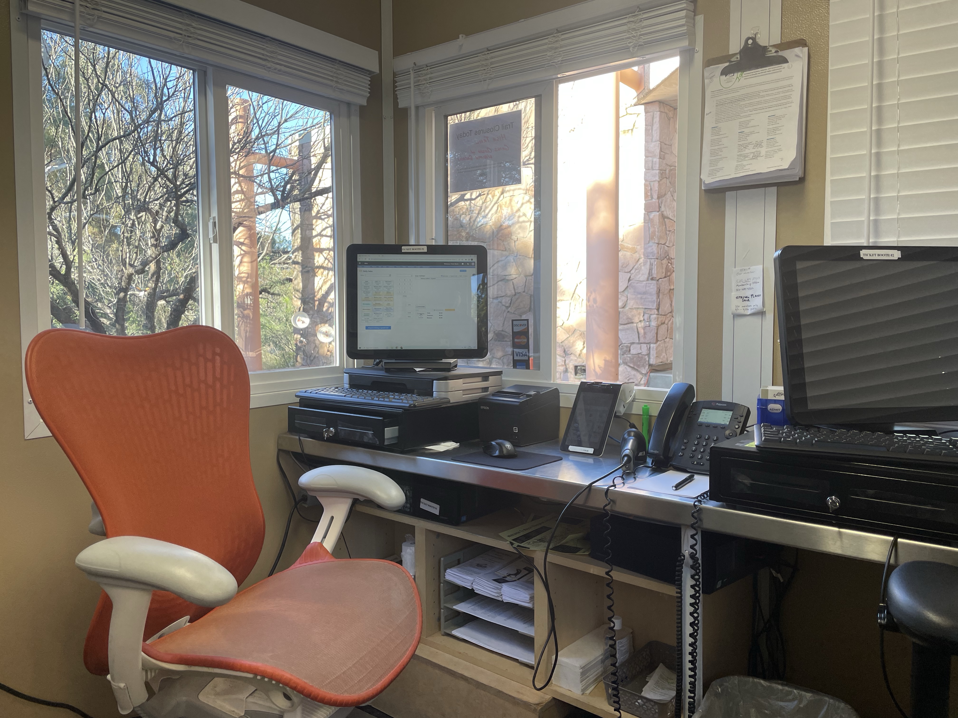 Here is where I spend most of my time, while I’m putting in my volunteer hours, there are two admissions windows, but during slower times only one is open, the second window is to try and expedite member into the arboretum, another perk of membership.