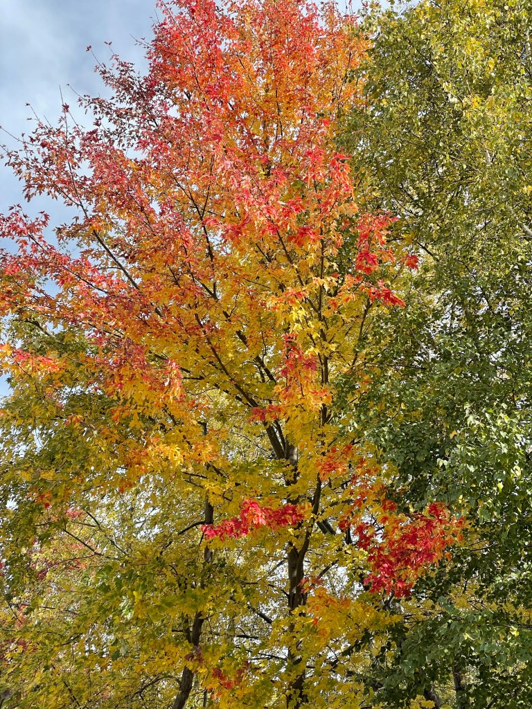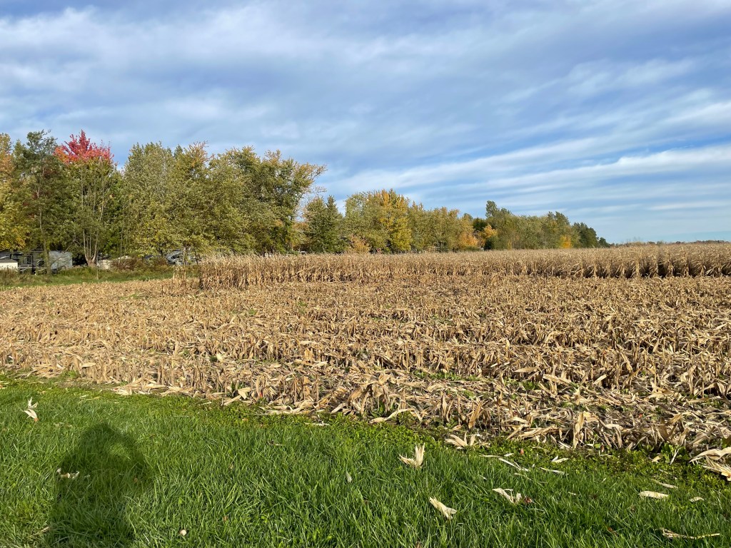 October the 28th and the roar of heavy equipment got our attention before 8 o’clock this morning, so the corn field is being harvested which besides being a sign of fall, it means that there will not be a food supply for the rodents over the winter months. I remember two years ago the corn crop was not harvested until February and the whole back row of the park seemed to have a rodent issue, you may notice the photo that I took from the entrance road how many green leaves are still on the trees in the park, we still have not had a hard frost at the park.