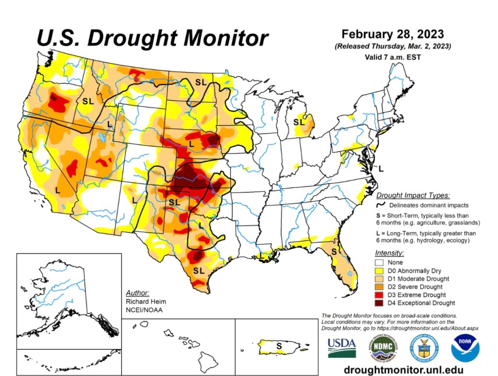 The above maps show how all the rain this year is helping the southwest, with Arizona being the real big winner in drought reduction and hopefully some of the larger water reserves like Lake Mead & Lake Powell in Utah and Nevada get a boost from the higher snowpack in the mountains.