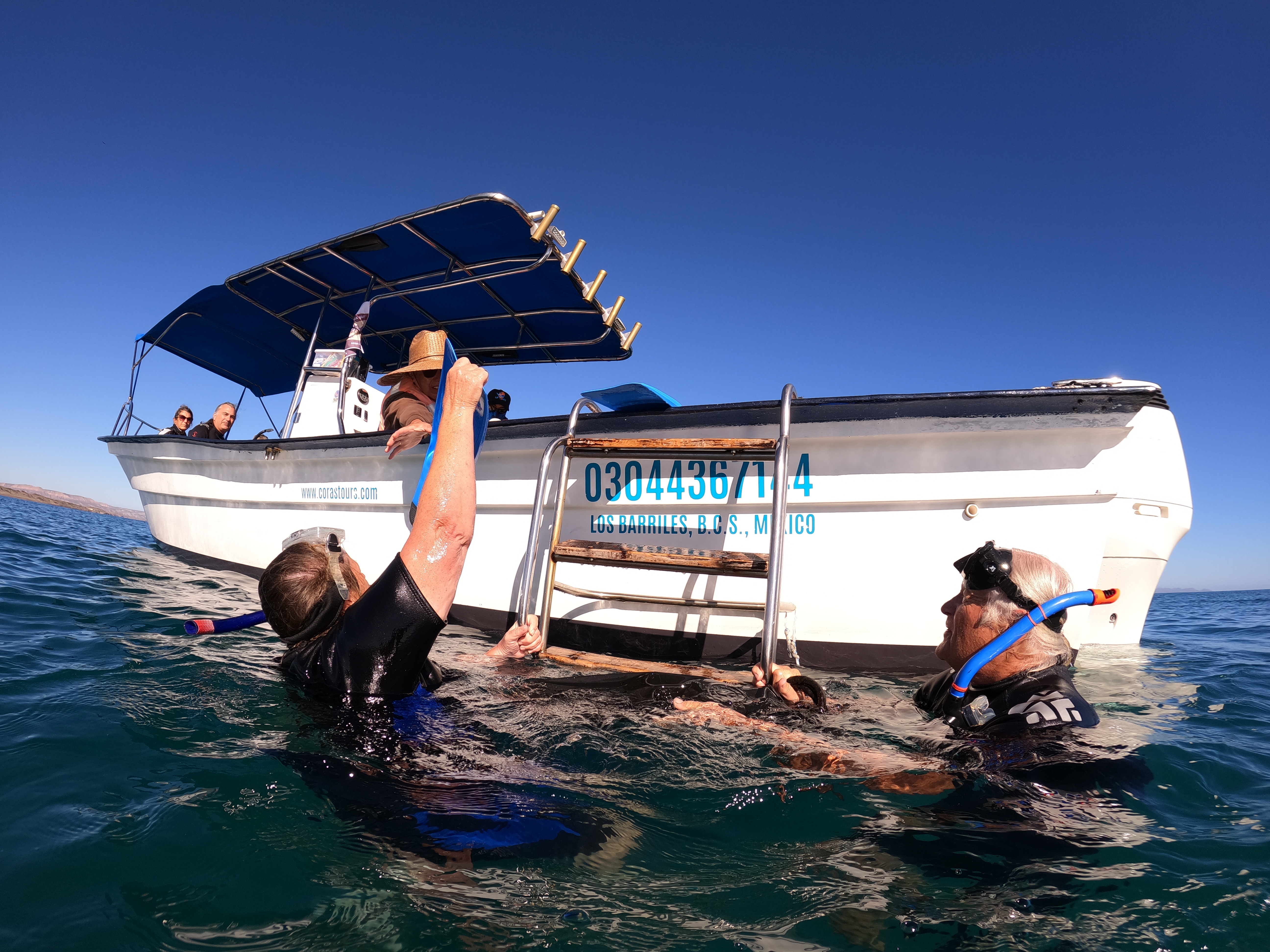 Tuesday, November 29th, 2022: We woke this morning on a beach, around six o’clock, it wasn’t one of the best nights sleep but I still think it beat driving two hours to the Marina this morning. We shared a almond croissant for breakfast as we headed into La Paz for an adventure of a lifetime. Today is going to be a special day, not a cheap day but a special day, we have an adventure chartered to swim with “Whale Sharks” these are the biggest fish known to man. And unlike their cousins the Great White Sharks these sharks are totally harmless.