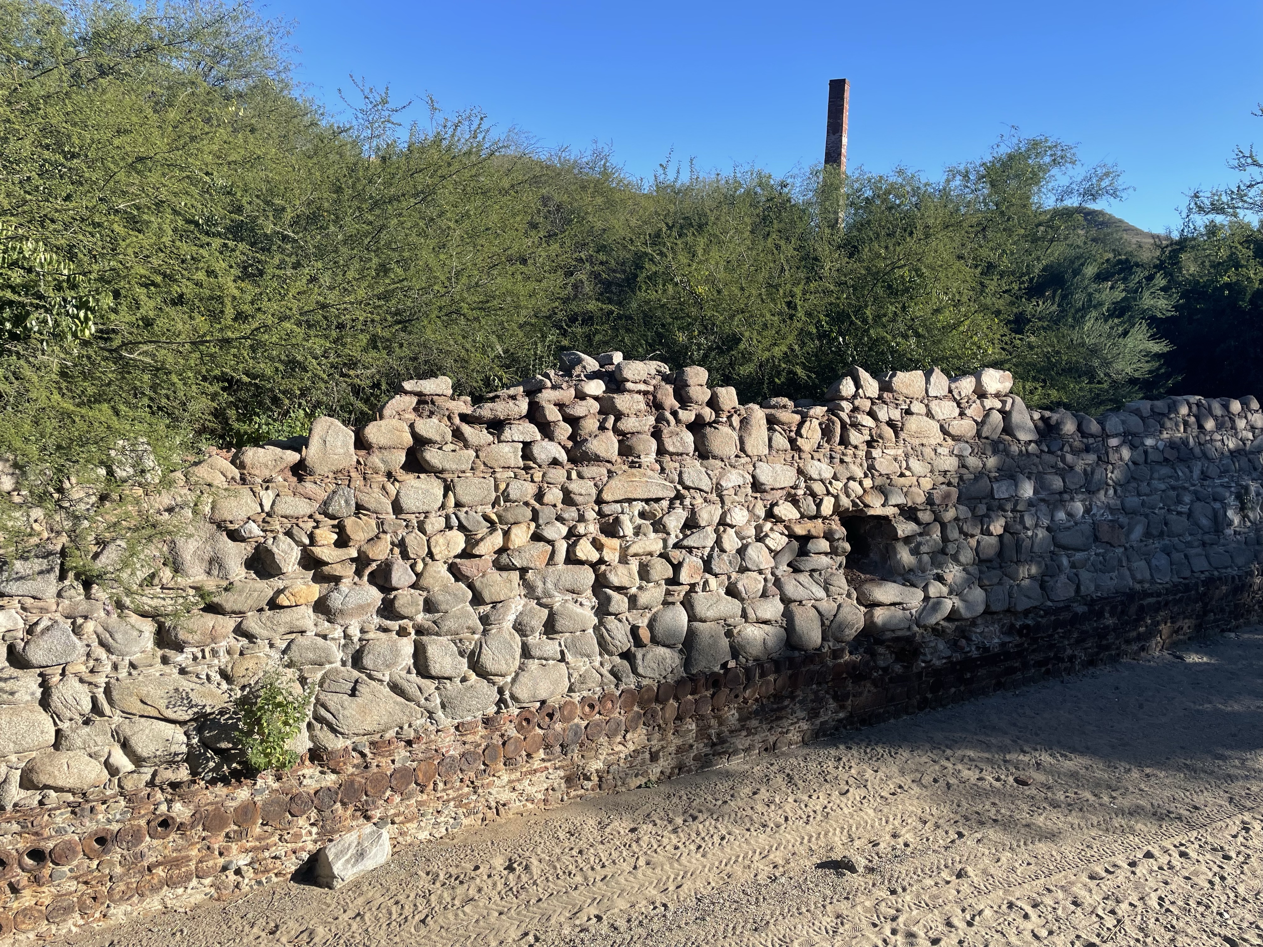 From the restaurant we wandered through the streets and made our way to a historic area that had been home to some sort of mining, with the only thing left standing being a huge smoke stack, a beautiful walk through the village and along the highway to the Mission that was closed today and through a few of the shops selling art and trinkets.