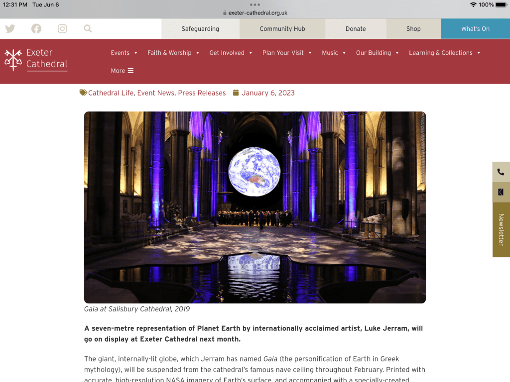 OK it’s Tuesday June 6th and we have been invited by friends, to take in an international earth exhibit at a church in Exeter, a bit of a strange outing, certainly not a normal adventure for the Buchanan’s. But as it was explained to us we decided that it sounded interesting enough to be worthy of an outing, so as a blogger I decided that it would be a good plan to do some research before our adventure. So, I started with this Google search “earth exhibit in Exeter church“, thinking I had covered all the possible parameters, this is what came up.