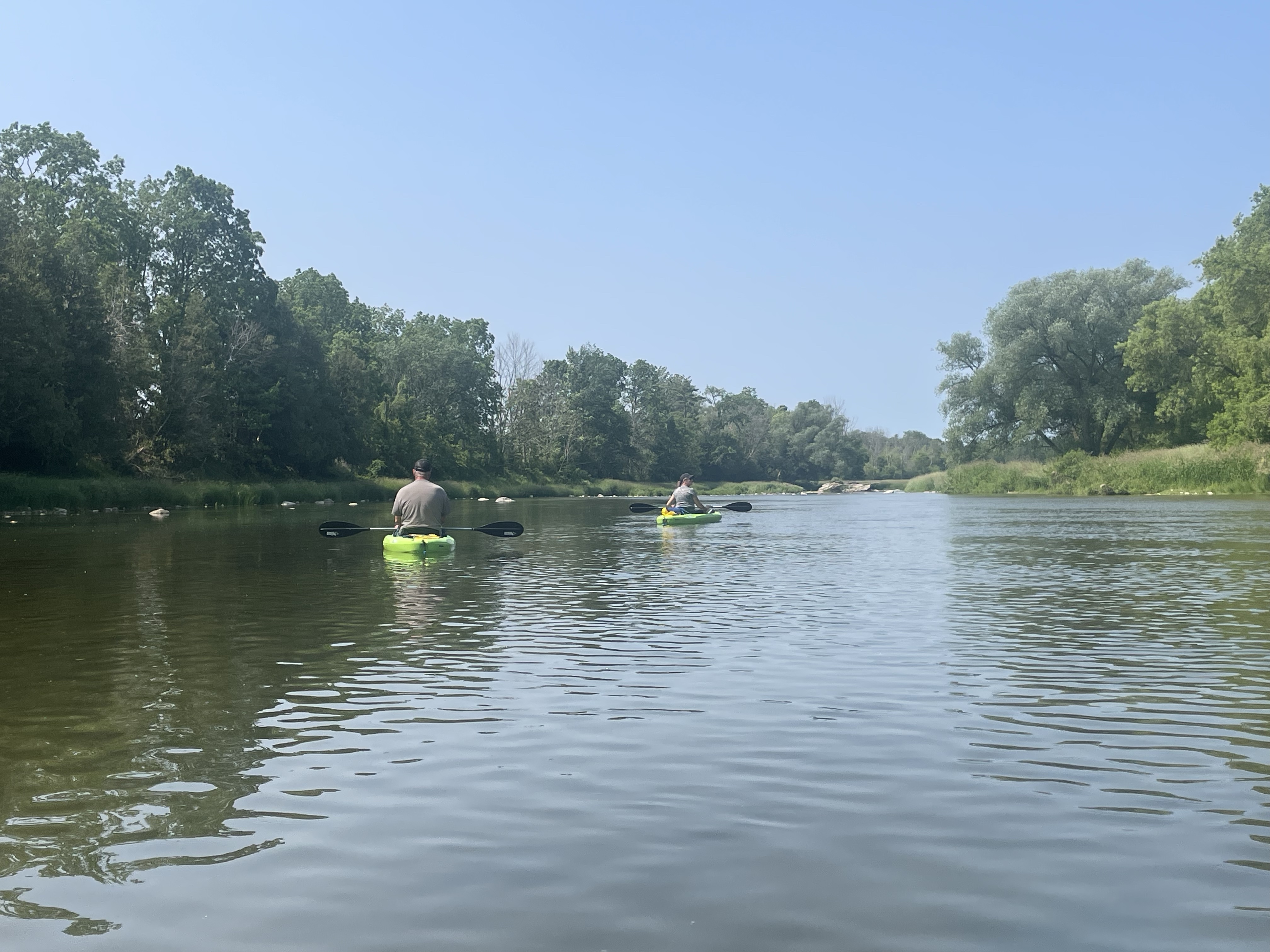 We had a number of spots along the route that caused some navigation issues, but the overall consensus was that as a journey it would be worth a redo, either a little earlier in the spring or after a significant rain storm. The down side of that would most likely be the clarity of the water which at this time allowed excellent allowing viewing of the fish. Our most significant rapids was just upriver from our exit point and while more substantial were still nothing to fear, and at our exit point we encountered our first gaggle of Canadian Geese with lots of young goslings. Below are a few of the photos from our adventure: