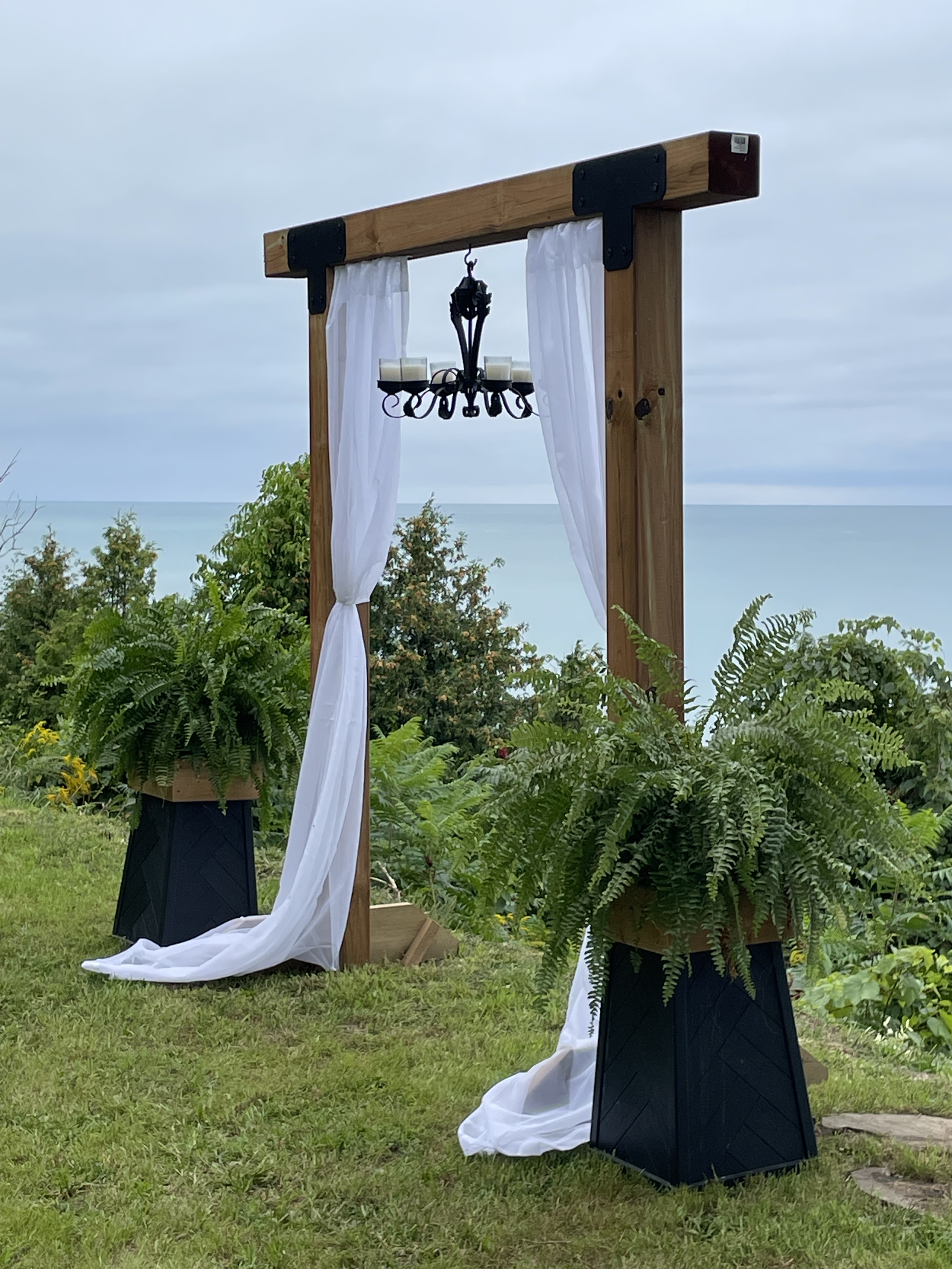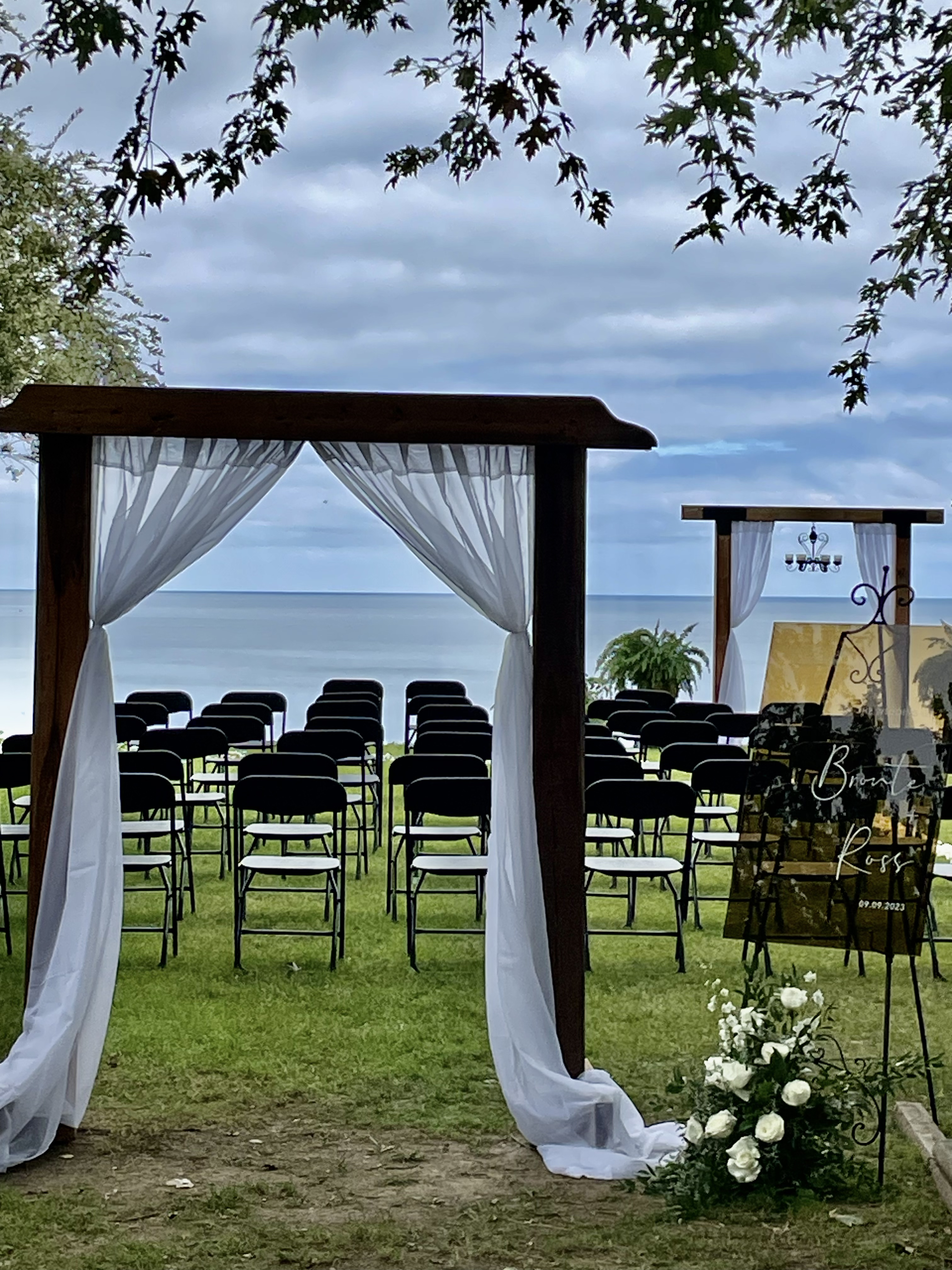 The week after Labour day has seen a flurry of activity with lots of preparation for the wedding on the 9th of September, the rec hall has being transformed into a reception hall, camp site # 10 has been transformed into a wedding site with arches, chandeliers, and white sheers, and of course enough chairs for the hundred and twenty guests. Last minute touch ups being done as required, a pot or two of flowers being moved and then moved again. And all of this being done with little or no real inconvenience to the campers, no the only change to the campers was the shutting down of the playground and washroom area on the afternoon of the wedding.
