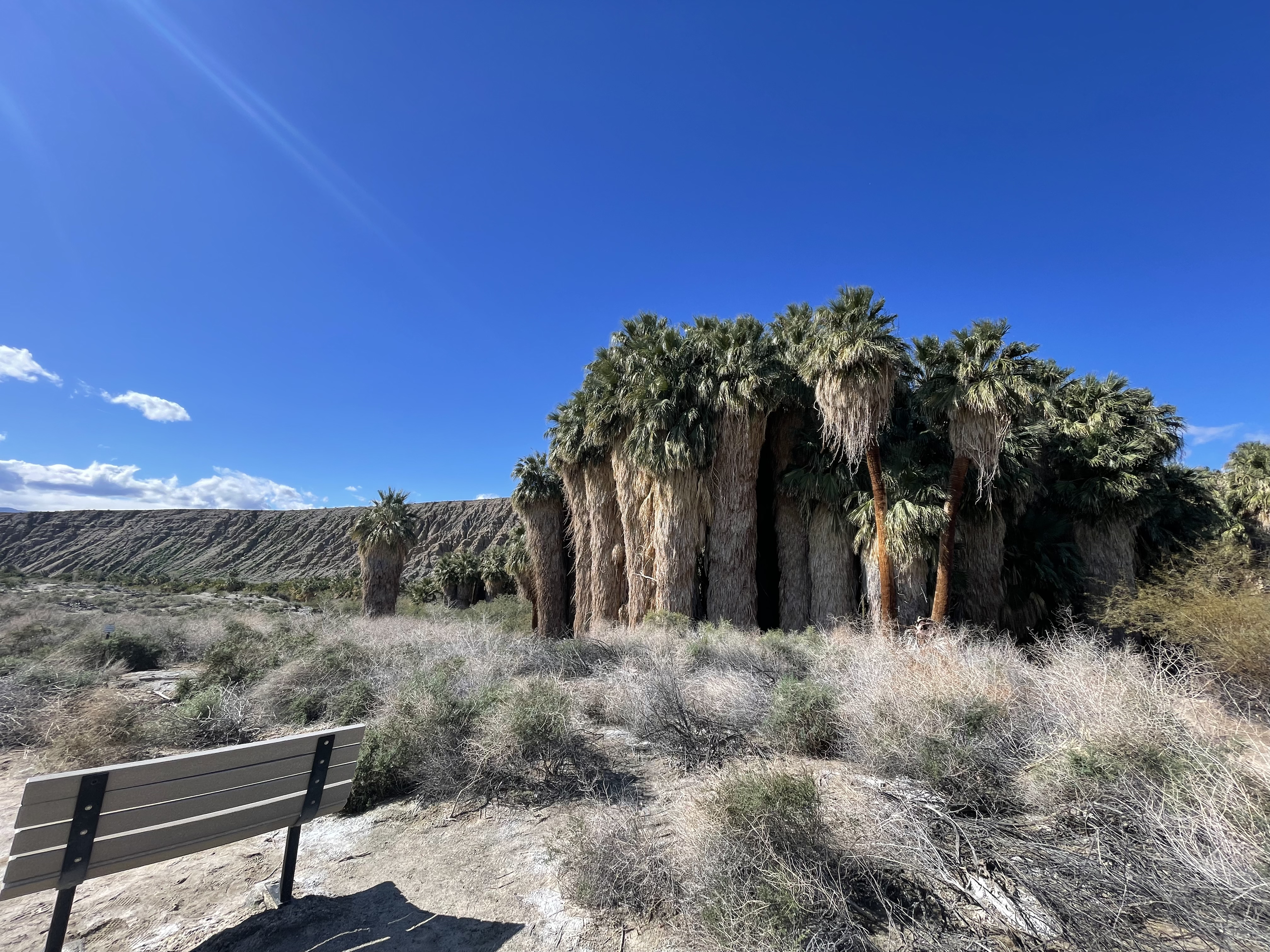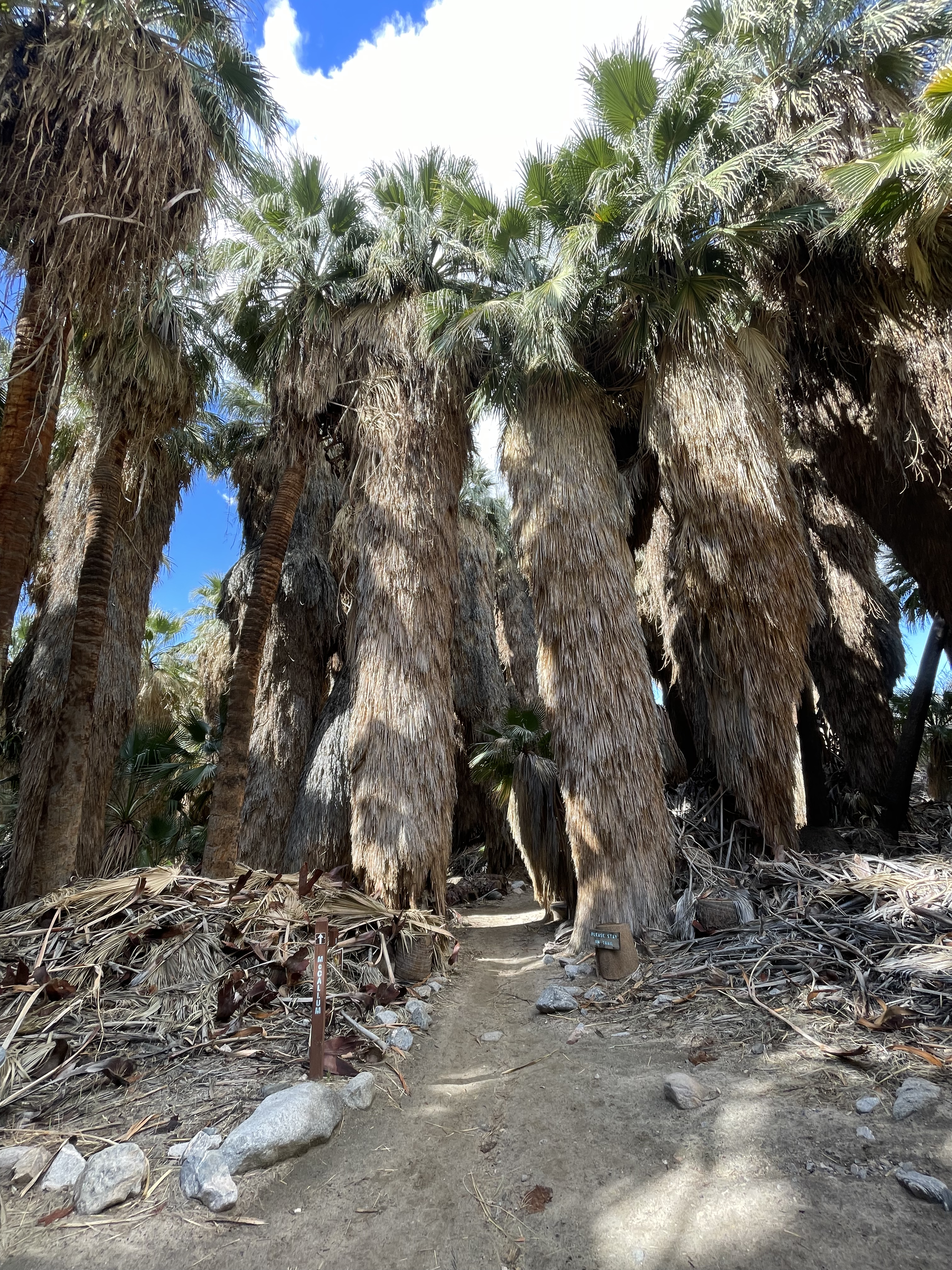 We are heading to an oasis just a few miles from the resort, and it is an amazing site to see, a huge cluster of palm trees growing in the middle of the desert, not common as palms need an abundance of moisture to grow and survive. This is a common sight along the San Andreas fault line that runs right through this area of California, it also explains all of the springs in the area both hot and cold. This particular oasis was damaged by the flooding that occurred the year before when California experienced excessive rainfall, so there were areas that were still closed to us, as the clean up is still underway