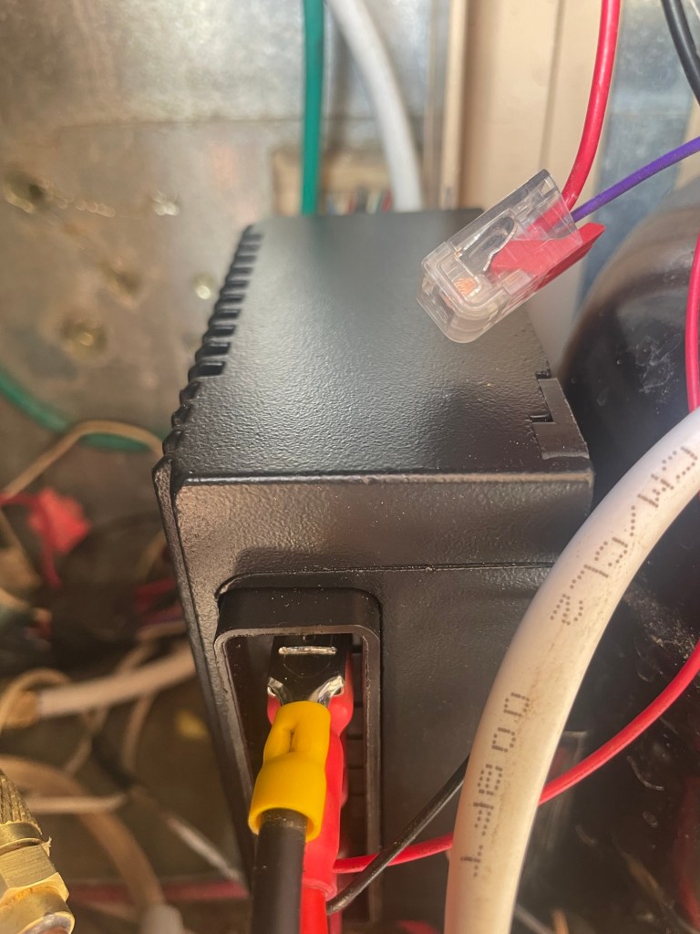 Job #1 today is to install the new pieces that I received from “JC Refrigeration” (Dutch Aire), as you may remember our freezer failed back in February while we were in California and after we got back to Arizona I replaced the wire that had burnt off with a random piece of 12 gauge wire that I had in my electrical bag, it was actual was a piece of house wire (you can tell by the size of the strands) but it was 12 gauge the size that I was told was used on the freezer compressor. And after some photos and emails they agreed to send me both the new wiring as well as the new control unit.