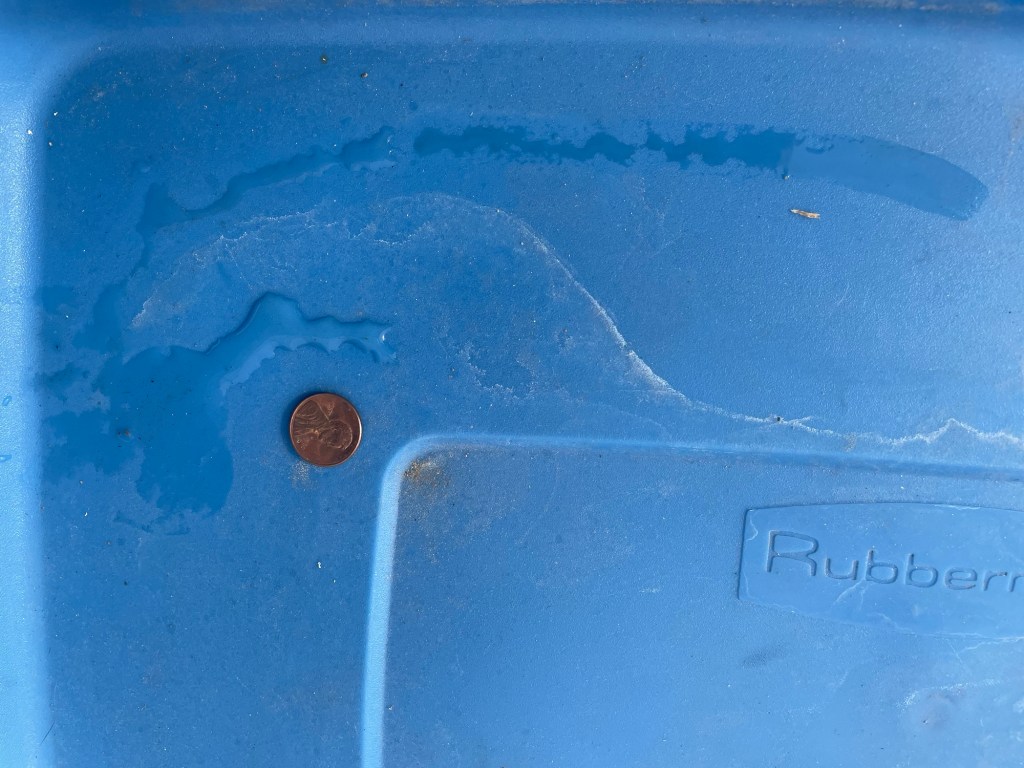 Ok first task today clear out the coach basement and check how much has leaked from the fresh water tank and as I pulled out the Rubbermaid container that I had positioned under the drip and was excited to see that my estimate of a drip every 10 minutes was pretty accurate. Here is how much water accumulated in 18 hours.