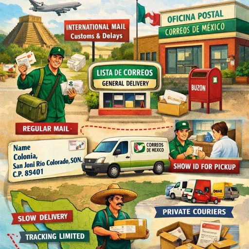 [Your name] [Street address / lot description] San Luis Río Colorado, Son. C.P. 83401 MÉXICO(If you have a specific street/colonia name, include it before the city.) - If mail carriers don’t deliver right to your site, you can have parcels held “en Lista de Correos” (general delivery) at the post office — then pick them up with your ID.
