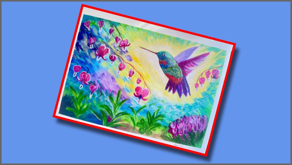 The first of February was a busy pickleball time for Miss Laurie, and after crossing into the United States and settling into the Imperial Dam LTVA then there was rock exploration of the area, so this is the only painting that was completed.