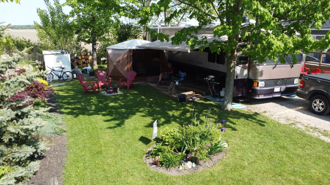 June 1st and it is already 30°C (86°F), which if we were still in Arizona would be a spectacular temperature, but because we are in Ontario we have to add in the humidity factor, making it more that a little uncomfortable. And many of the natives here in the park, have fired up the air conditioners, afterall the price of the electricity is included in the seasonal rates … jus sayin.