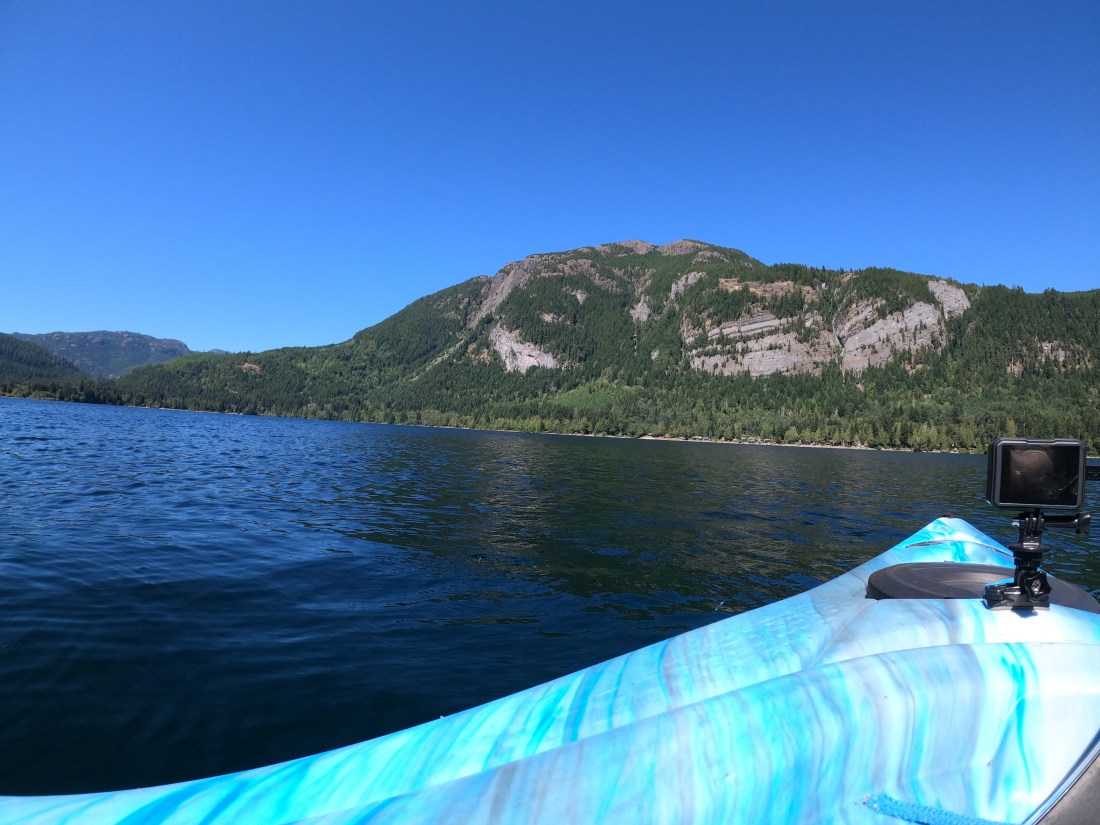 Like so many things in British Columbia, much of the discovery and exploration has been driven by either the logging or mining industry. And whether you agree or not, so much of this province would still be virgin territories if not for the these industries, most of the access roads are old logging roads that are widened to become acceptable. The regional park where we launched was the park that was donated by the cottage owners, it is 105 hectares that has 52 boondocking campsites, some right on the shoreline, and the lake itself is 815.3 hectares | 2015 acres | 8.2 km², the views of Mount Mark are just plain spectacular, the lake is crystal clear and visibility was excellent.