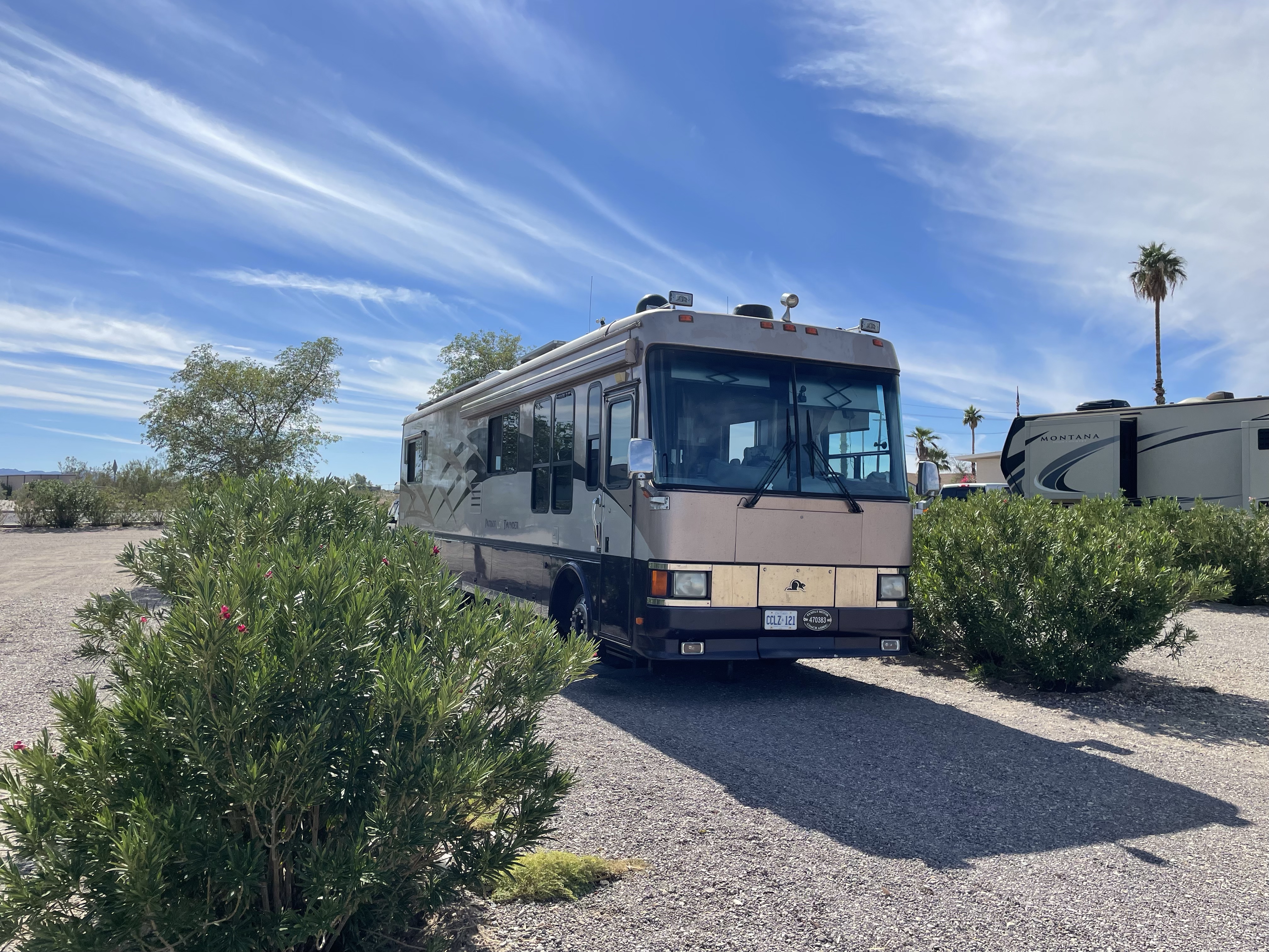 Monday, October 31st, 2022: And today will be a busy day for us, we need supplies so a Walmart run will be required, I has to clean the toad, it is carrying over 2000 miles of road grim, I also need to top off the fuel in the toad, and I was able to get regular gasoline for under $4/gallon, well it was $3.999 a gallon, so barely under the $4 mark. We left for Yuma shortly after ten and made it back to the coach shortly after after noon. It is warm today, 85°F (30°C), there is a breeze and the humidity is only 12% so a warm dry day. Rig wise we are as ready to go as possible, after all we just had a 2000 mile warm up, I will connect the toad tomorrow morning as we wait for the other five rigs to roll in, the last time I heard was nine o’clock, and will plan accordingly.